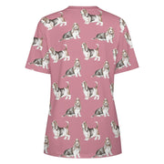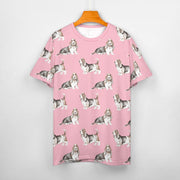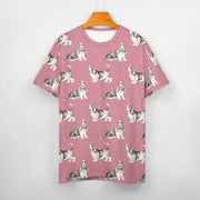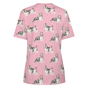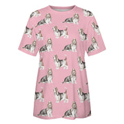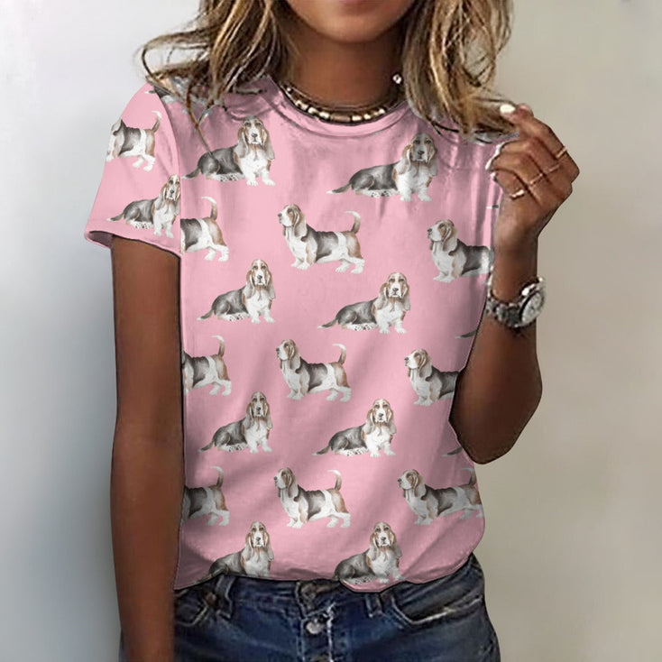 Watercolor Elegance Basset Hounds Women's Cotton T-Shirt-Apparel-Apparel, Basset Hound, Dog Mom Gifts, T Shirt-2XS-Pink-4