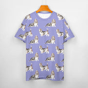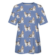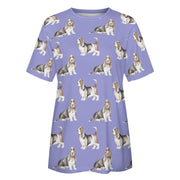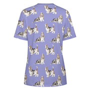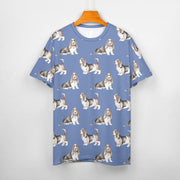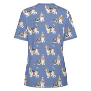Watercolor Elegance Basset Hounds Women's Cotton T-Shirt-Apparel-Apparel, Basset Hound, Dog Mom Gifts, T Shirt-2XS-CornflowerBlue-26