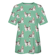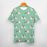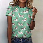 Watercolor Elegance Basset Hounds Women's Cotton T-Shirt-Apparel-Apparel, Basset Hound, Dog Mom Gifts, T Shirt-2XS-MediumAquaMarine-21