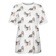 Watercolor Elegance Basset Hounds Women's Cotton T-Shirt-Apparel-Apparel, Basset Hound, Dog Mom Gifts, T Shirt-39