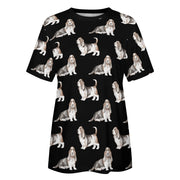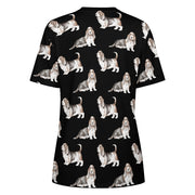 Watercolor Elegance Basset Hounds Women's Cotton T-Shirt-Apparel-Apparel, Basset Hound, Dog Mom Gifts, T Shirt-9