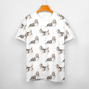 Watercolor Elegance Basset Hounds Women's Cotton T-Shirt-Apparel-Apparel, Basset Hound, Dog Mom Gifts, T Shirt-27