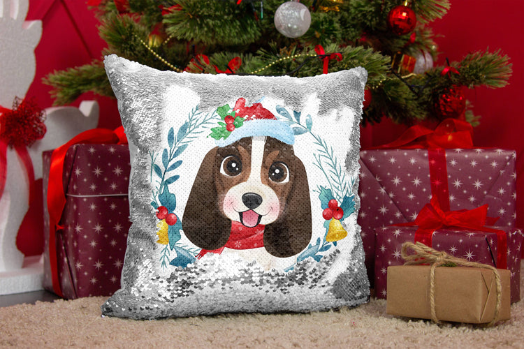 Transform your living space into a winter wonderland with our Merry Basset Hound Christmas Sequinned Pillowcases.