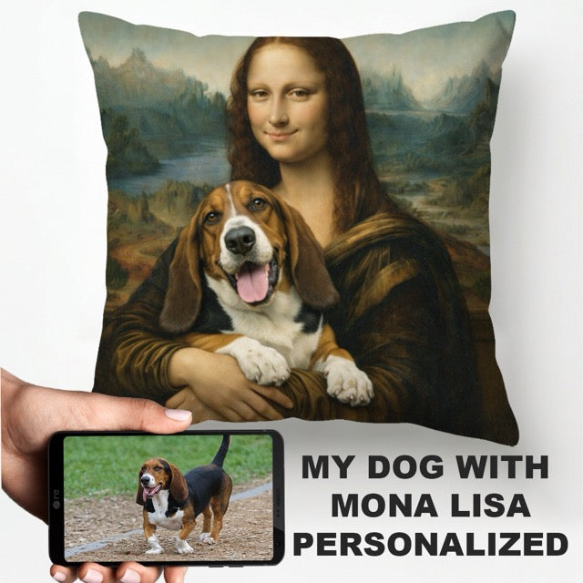 Basset Hound Pillow Case - My Dog with Mona Lisa - Personalized Design