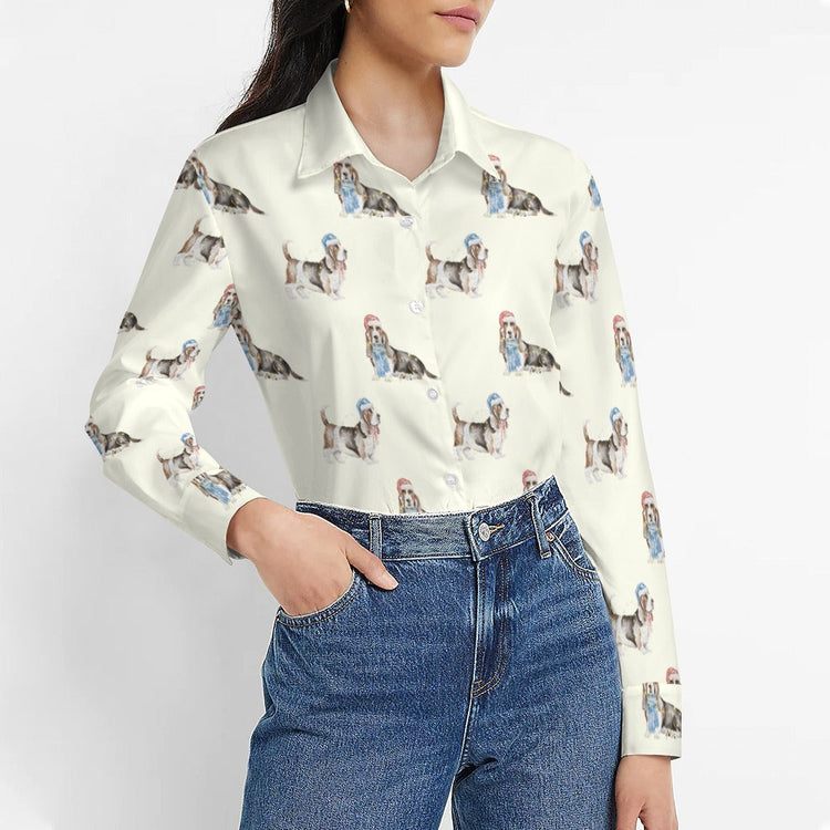 Show Your Love for your favorite four-legged friends with our Tricolor Basset Hounds Christmas Women’s Shirt!