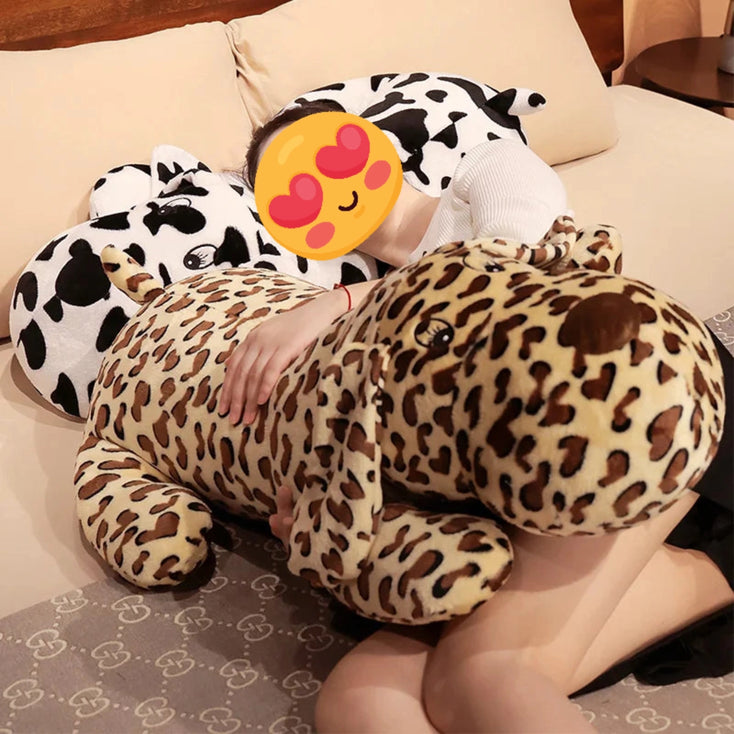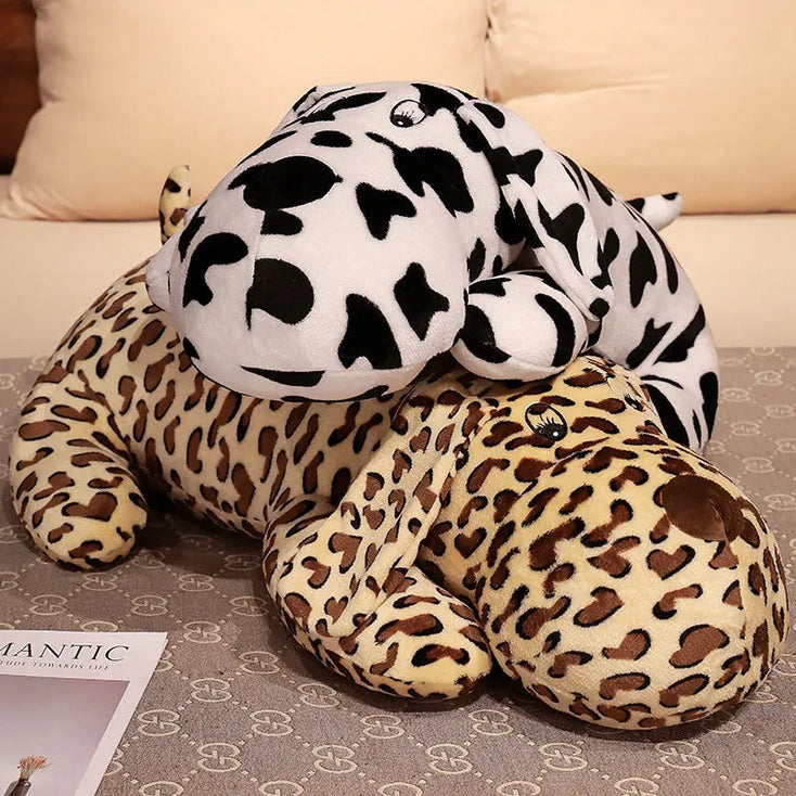 Introducing the Whimsical Coat Basset Hound Stuffed Animal Plush Pillows. This plush combines the classic charm of a Basset Hound with a trendy leopard print, and a classic black-and-white cow print, making them both standout pieces.