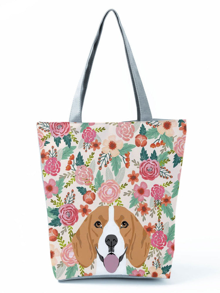 Made of polyester, with a top zipper closure, comfortable and durable handles, and featuring the cutest Beagle in bloom design.