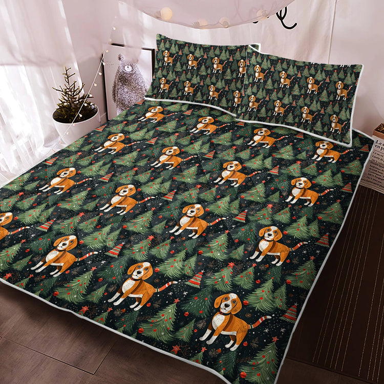 Celebrate the holidays with our Beagle Holiday Charm Christmas Quilt Blanket Bedding Set!