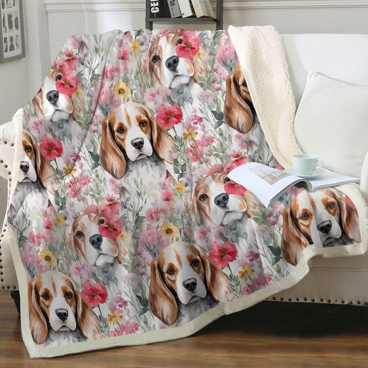 Beagles in a Blossom Wonderland Soft Warm Fleece Blanket
