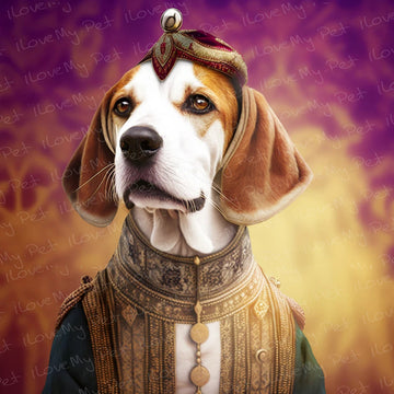 Immerse yourself in the noble grandeur of our Regal Elegance Maharaja Beagle Wall Art Poster.