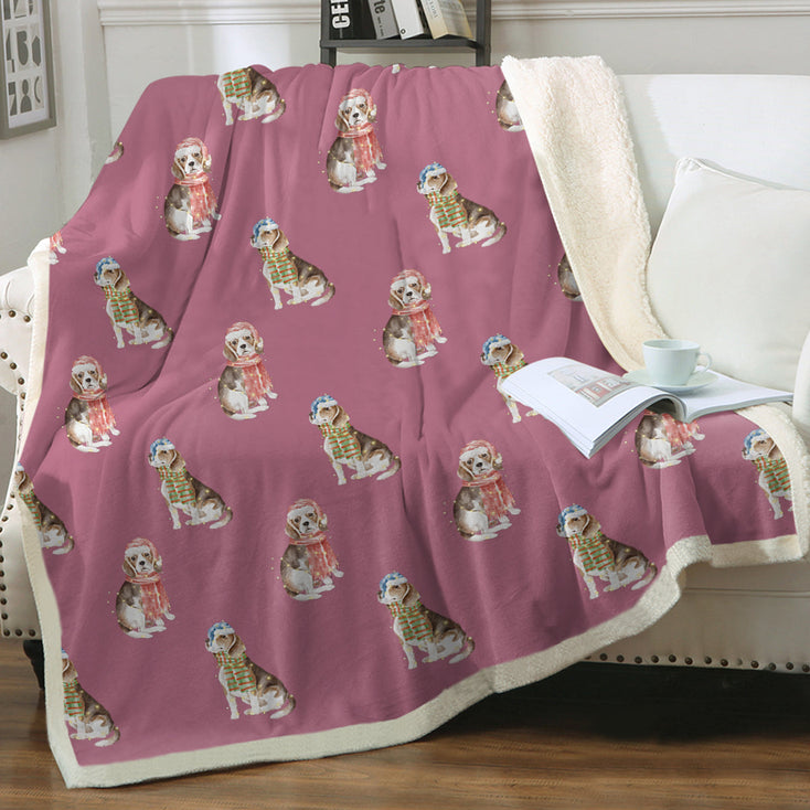 Watercolor Merriment Beagles Christmas Sherpa Fleece Blanket - 8 Colors