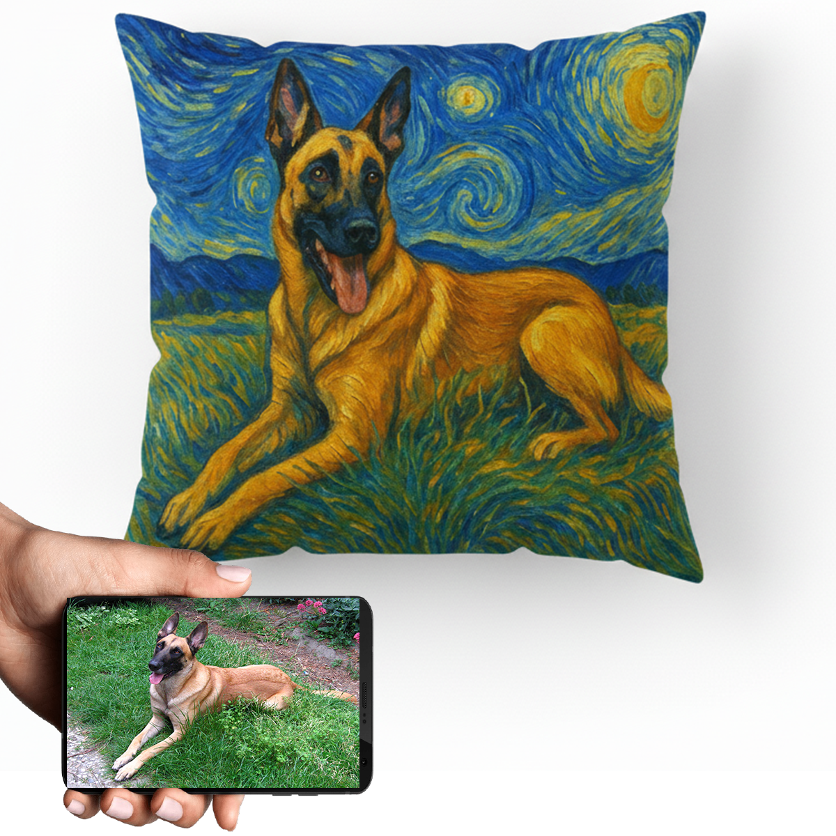 Transform your love for your Belgian Malinois into a stunning piece of art with our Personalized Starry Night Artwork Custom Belgian Malinois Pillowcase.