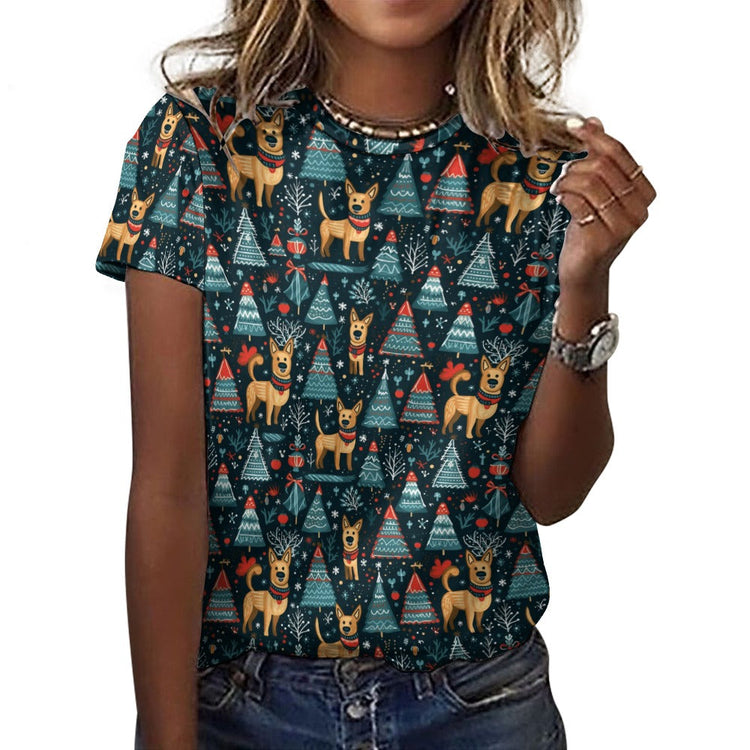 Celebrate the festive season with our Reindeer Games Belgian Malinois Christmas Women's Cotton T-Shirt, a heartwarming tribute to your furry friend.