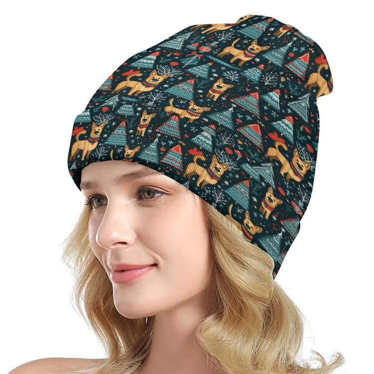 The Reindeer Games Belgian Malinois Warm Christmas Beanie is the perfect festive accessory for your beloved pet. This beanie features jovial German Shepherds whimsically adorned with reindeer antlers, frolicking among wintry pines and festive firs.