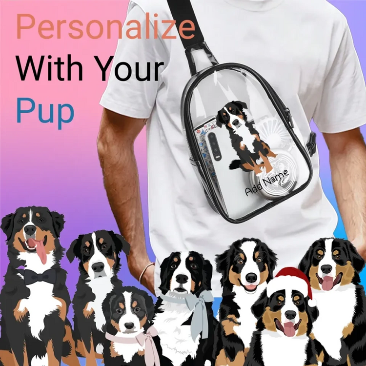 Unleash your furry love with our unique gifts for Bernese Mountain Dog lovers. This transparent sling bag is more than just an accessory; it's a heartfelt tribute to your beloved pet. Customize it with your pup's likeness and name, making it a cherished keepsake.