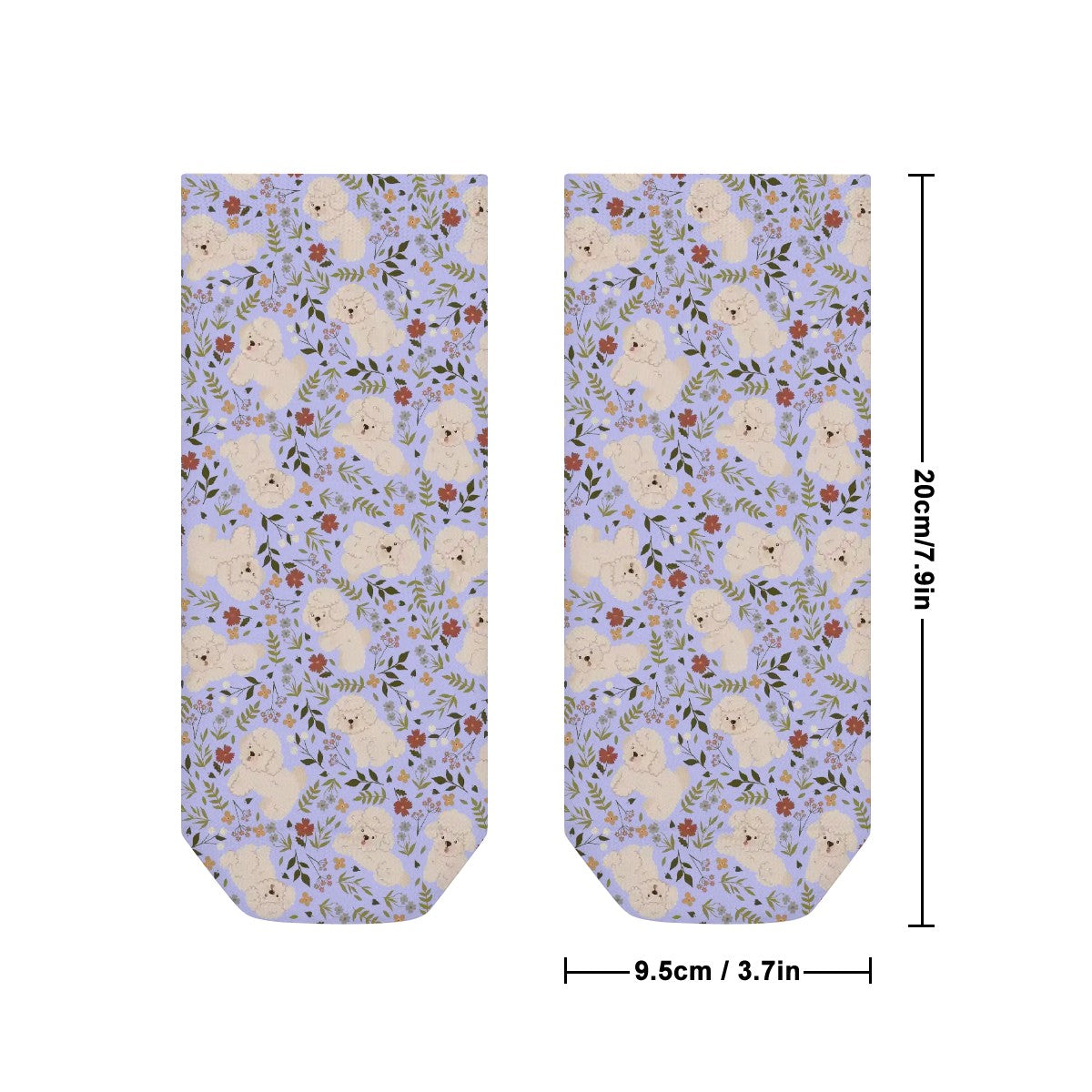 Bichon Frise Socks - Ankle Length - Flower Garden Bichon Frise