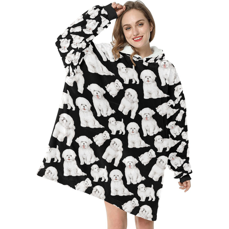 Wrap yourself in warmth and joy with our Watercolor Celebration Bichon Frise Blanket Hoodie!