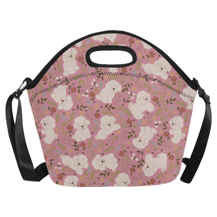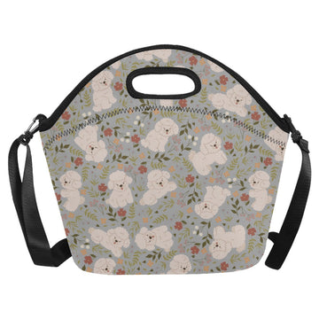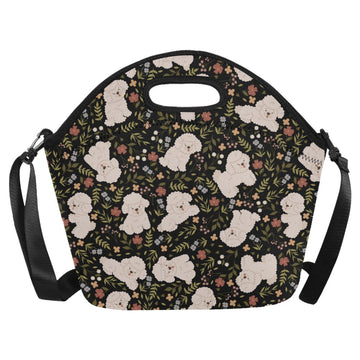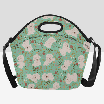 Flower Garden Bichon Frise Neoprene Lunch Bag