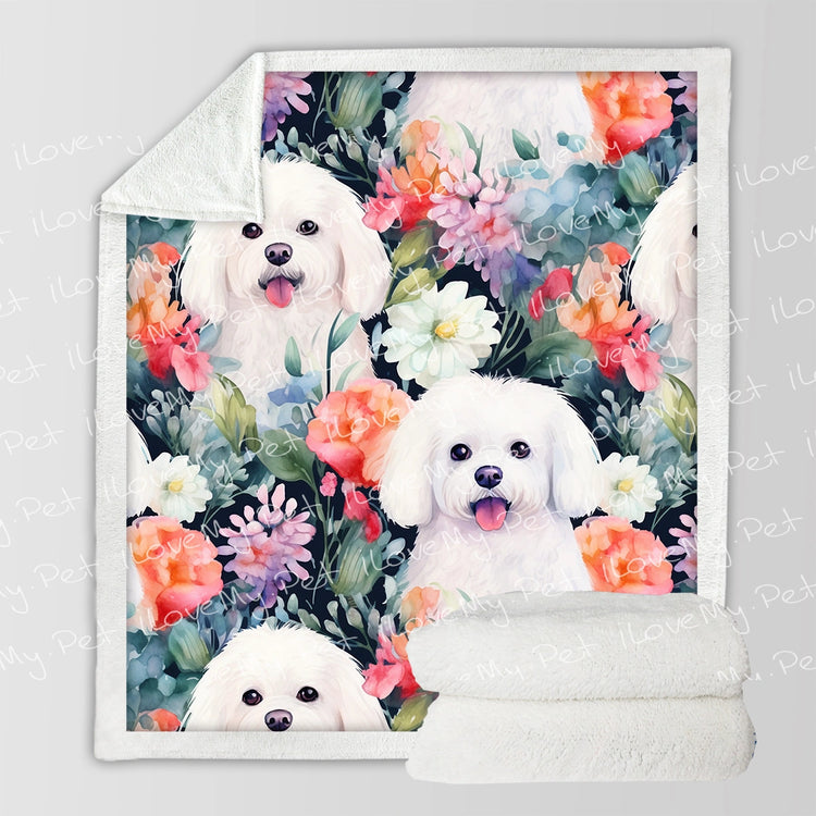 Bichon Frise in Bloom Soft Warm Fleece Blanket