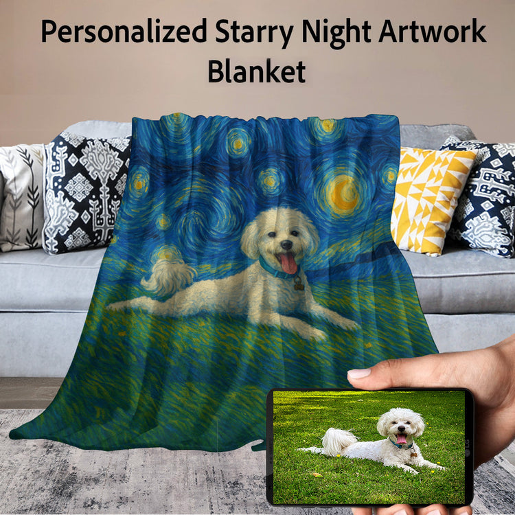 Personalized Starry Night Artwork Custom Bichon Frise Blanket