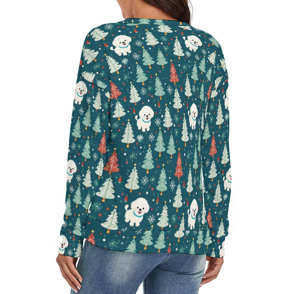 Celebrate the joy of the holiday season with our Winter Wonderland Bichon Frise Women's V-Neck Christmas Sweater!