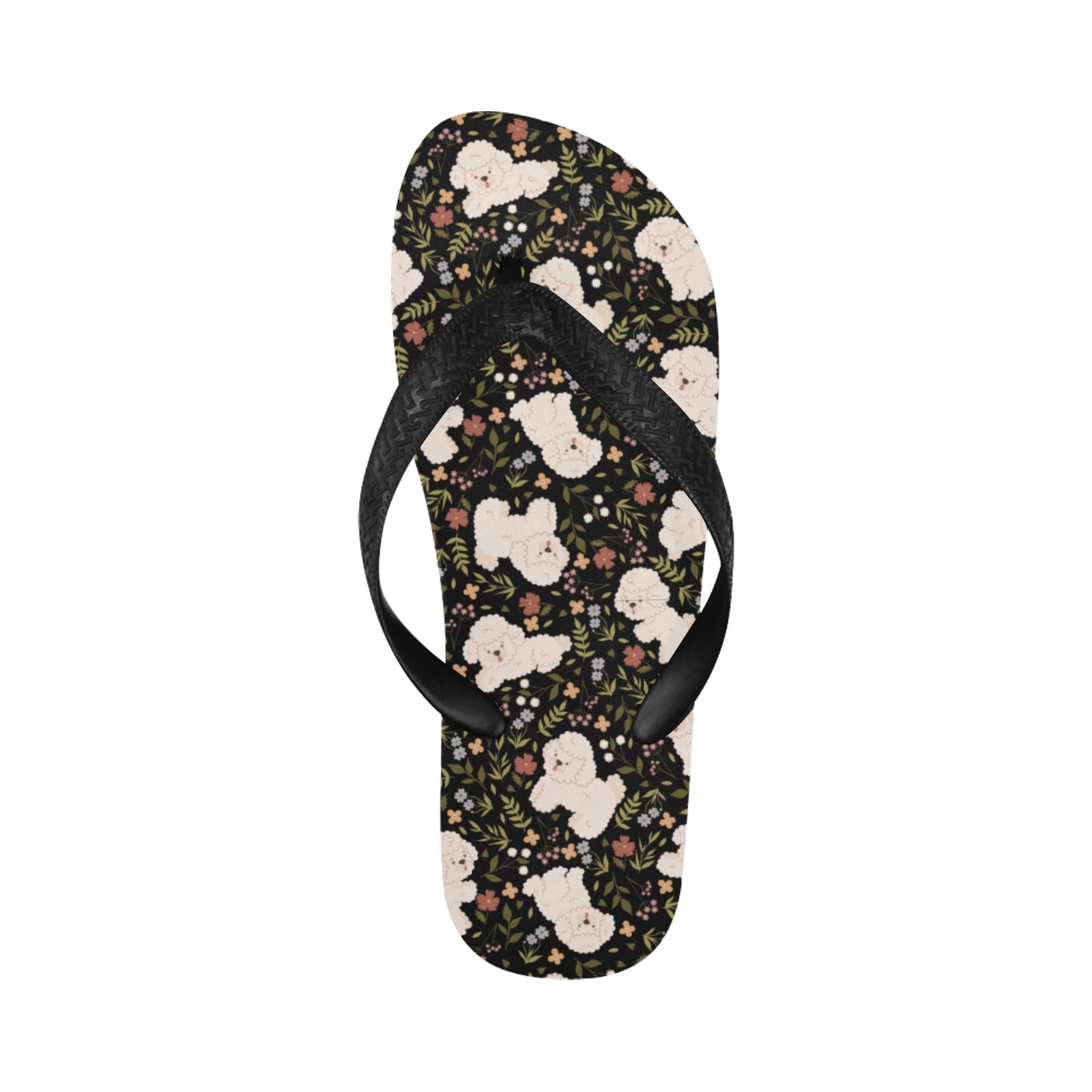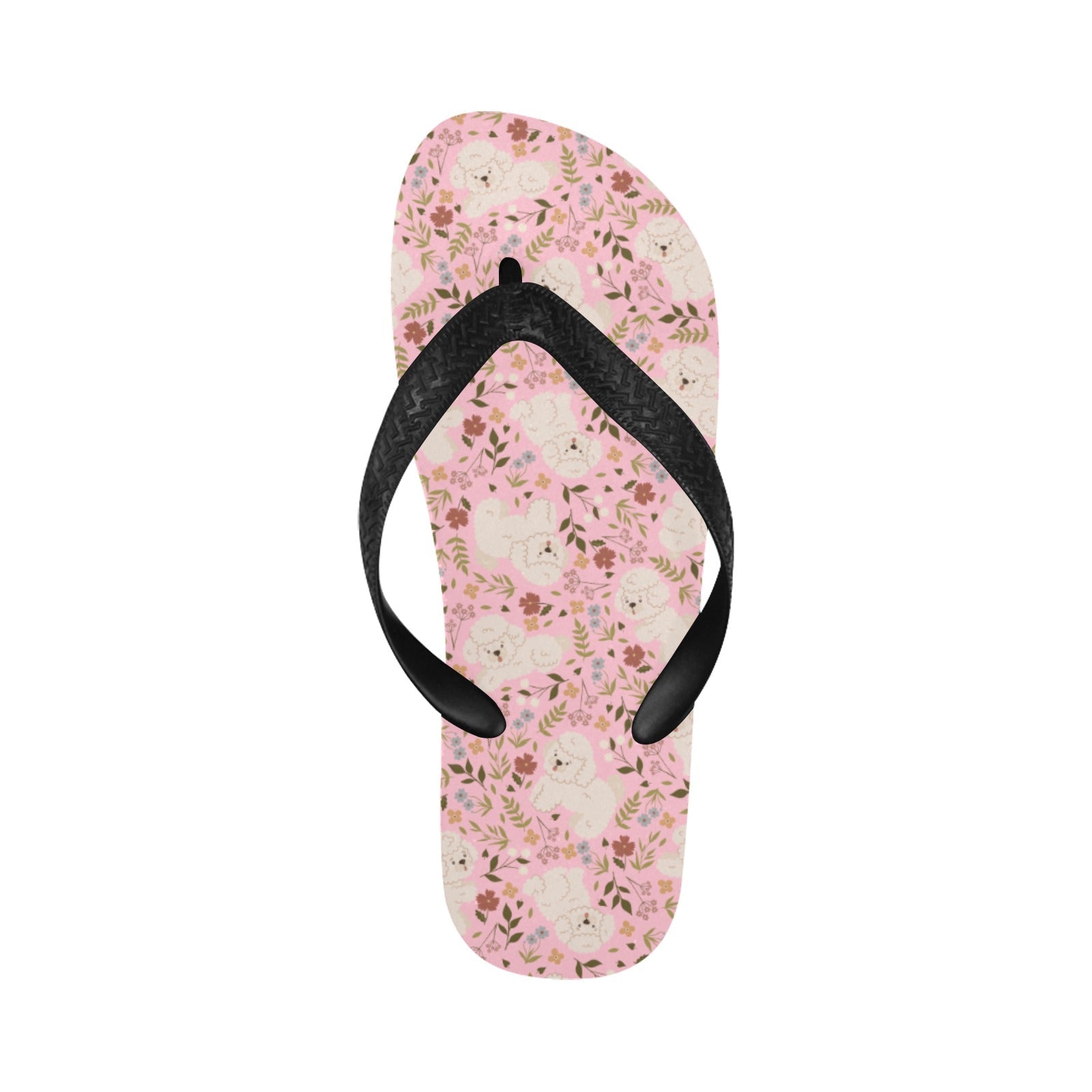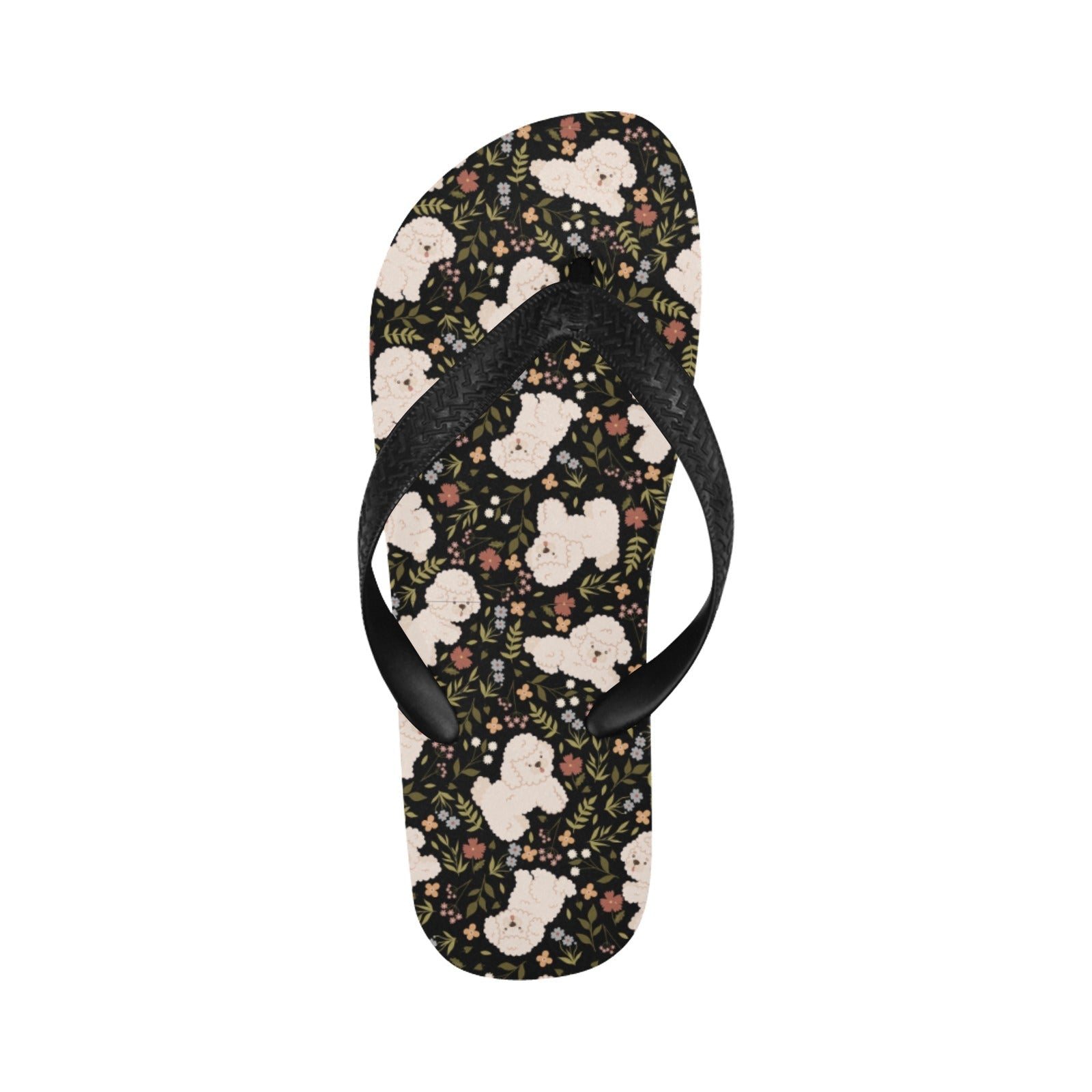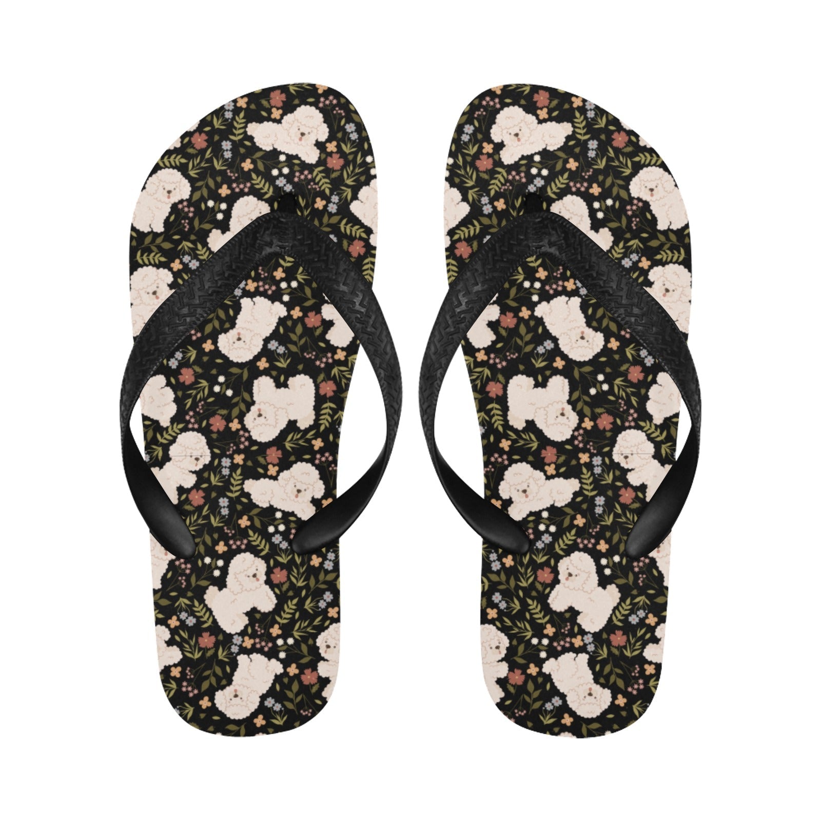 Flower Garden Bichon Frise Unisex Slippers-Black-S-23