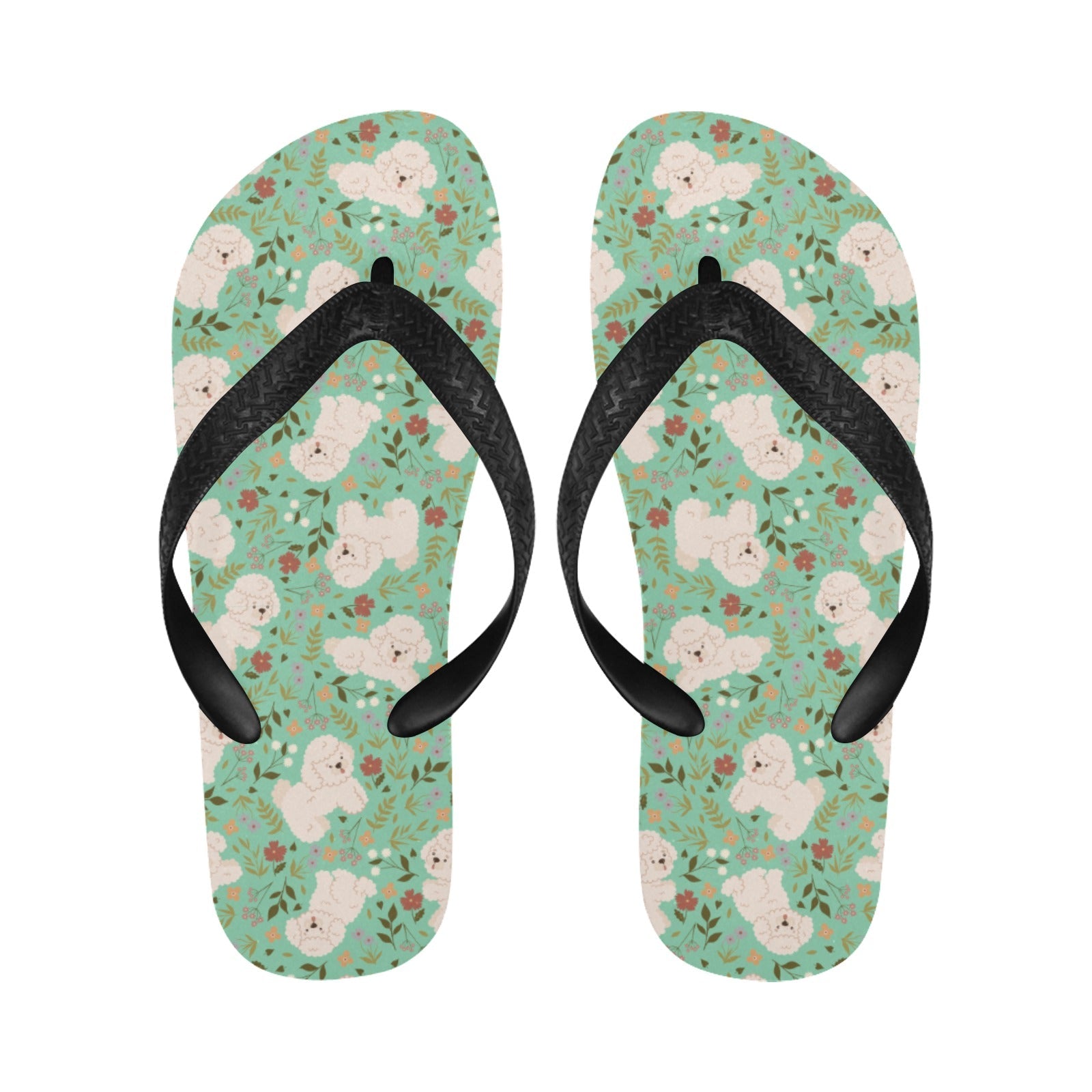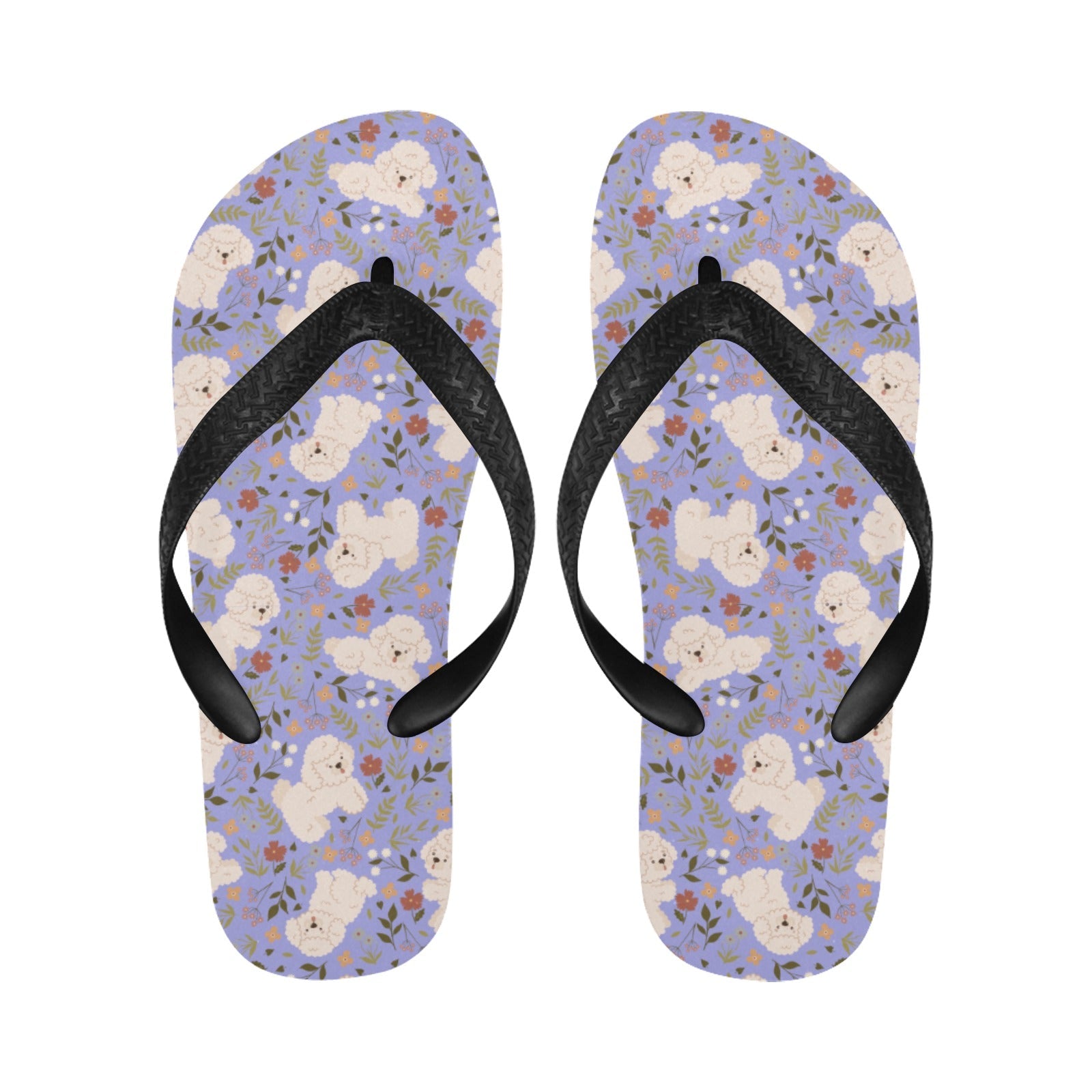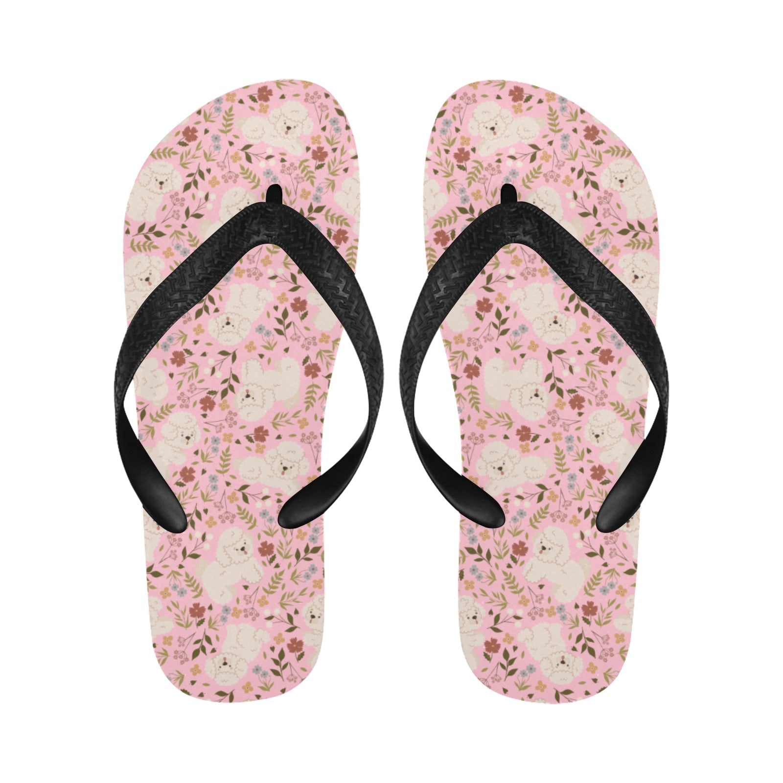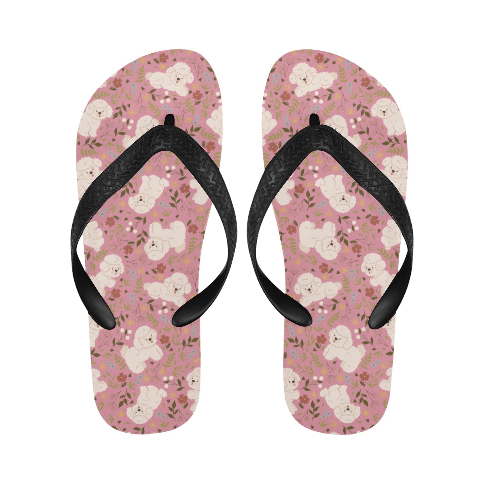 Flower Garden Bichon Frise Unisex Slippers-Black-S-23