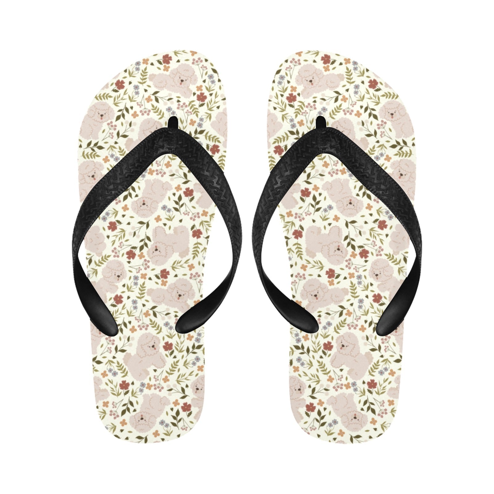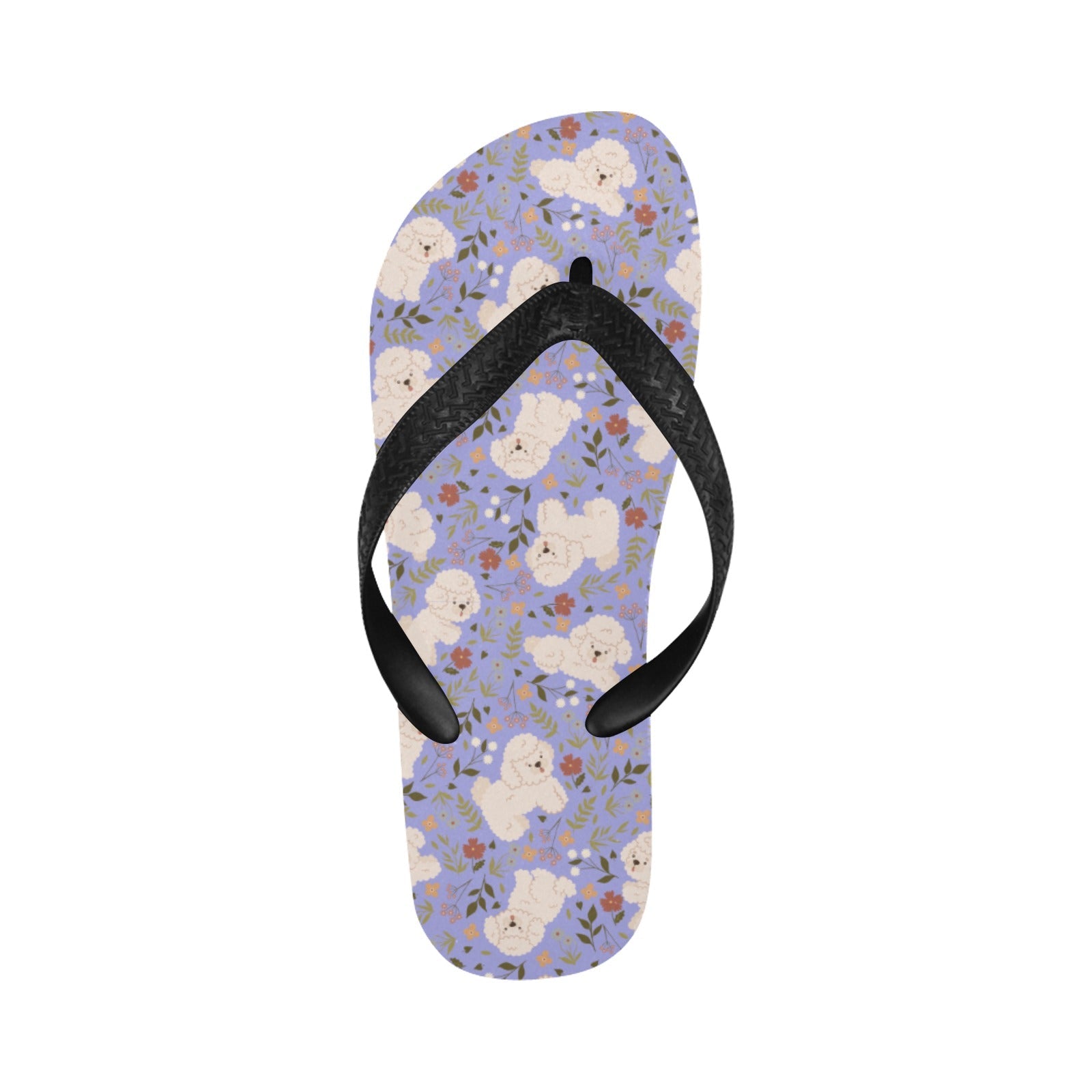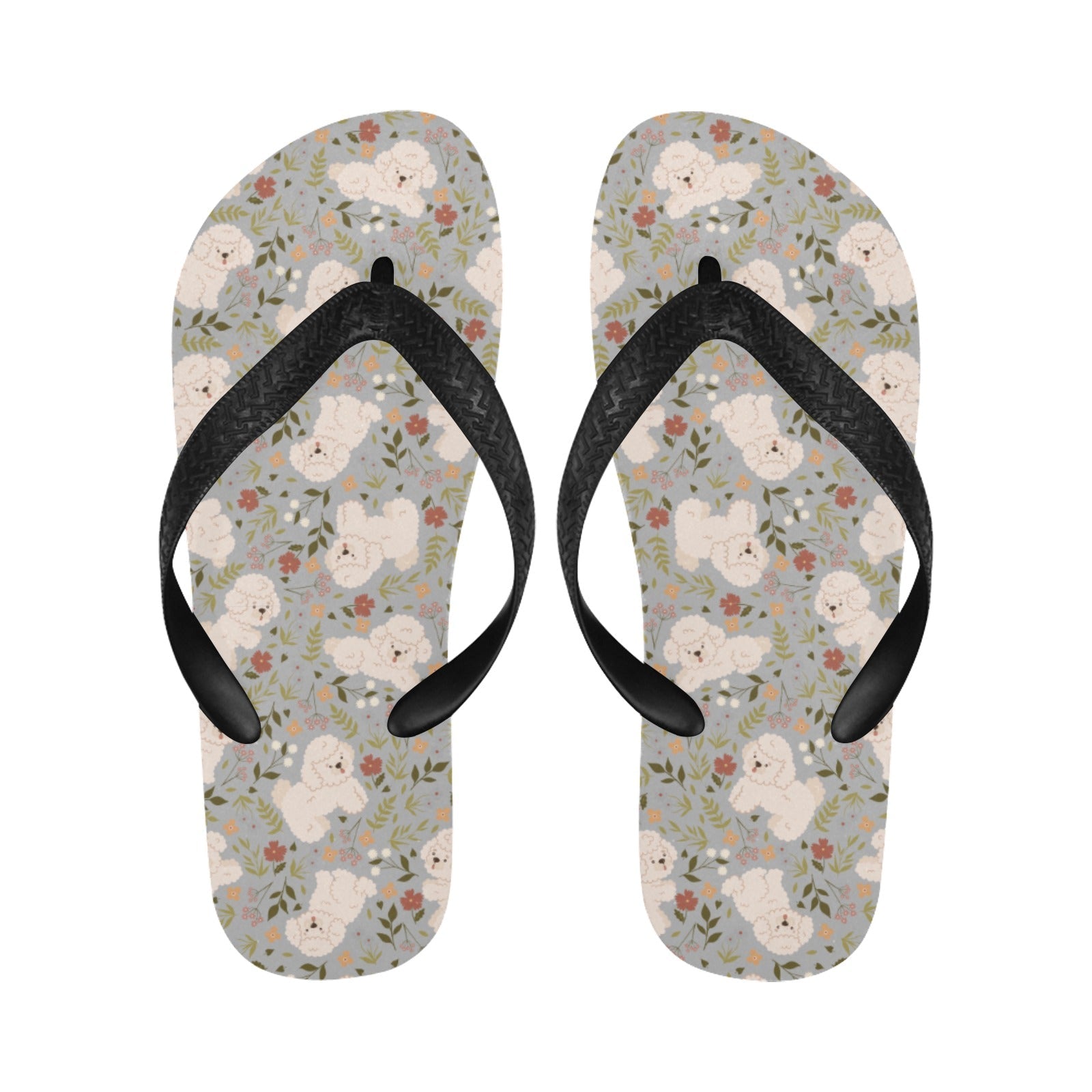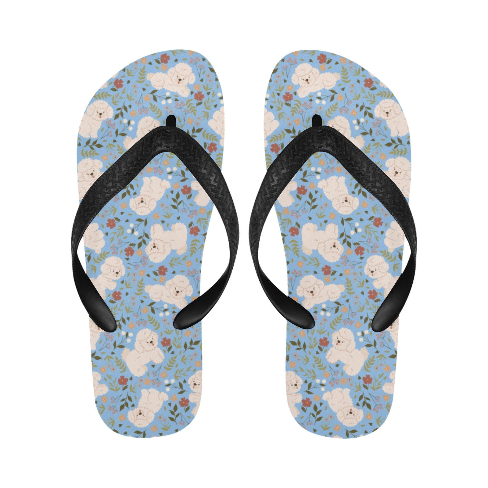 Flower Garden Bichon Frise Unisex Slippers-Black-S-23