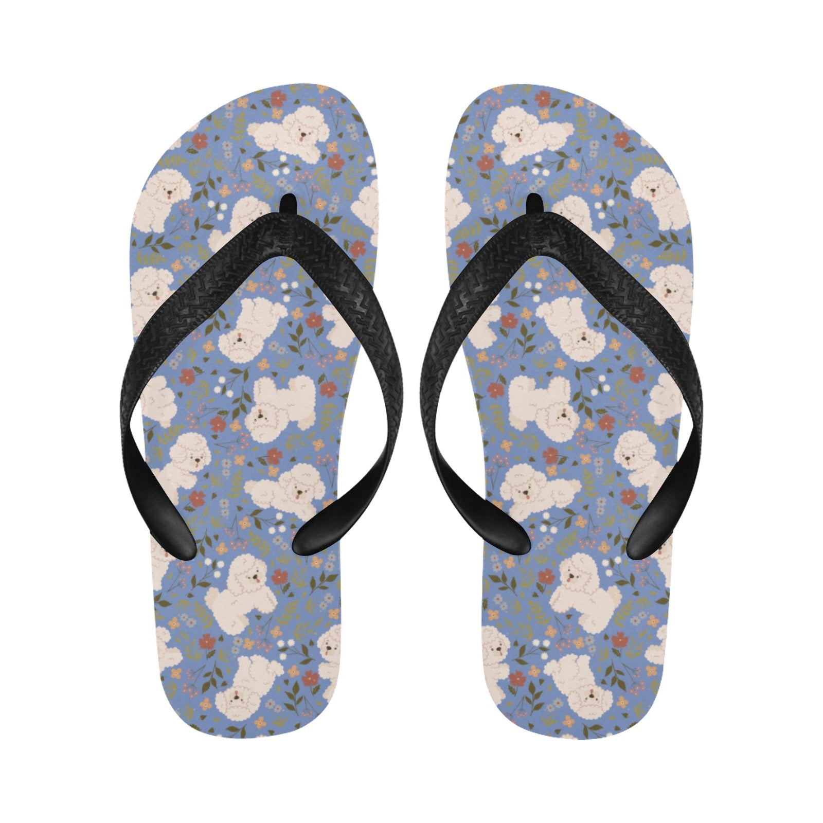 Flower Garden Bichon Frise Unisex Slippers-CornflowerBlue_1-S-18