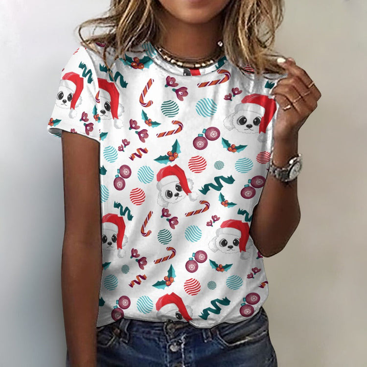 Merry Christmas Bichon Frise All Over Print Women's Cotton T-Shirt - 4 Colors