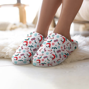 Merry Christmas Bichon Frise Women's Cotton Mop Slippers - 4 Colors