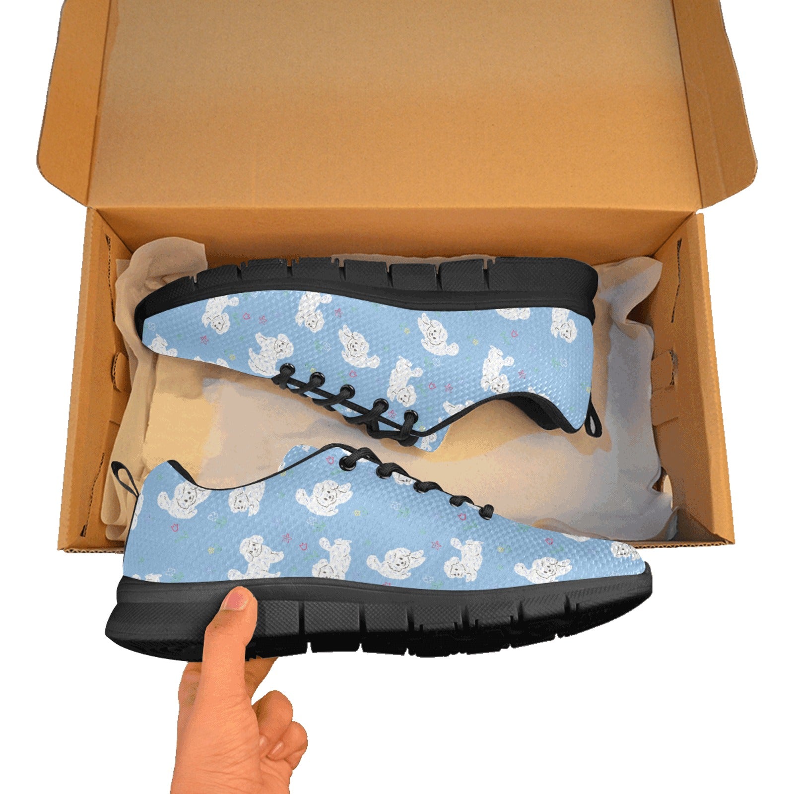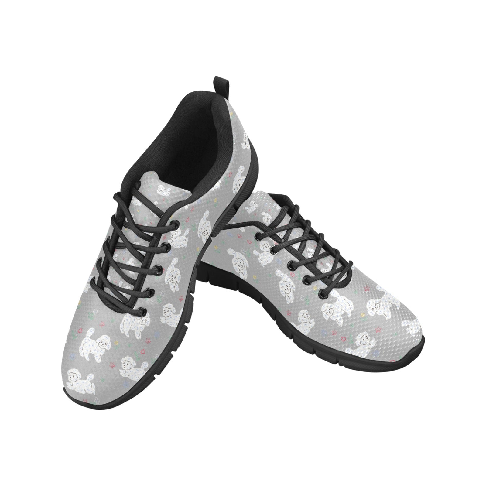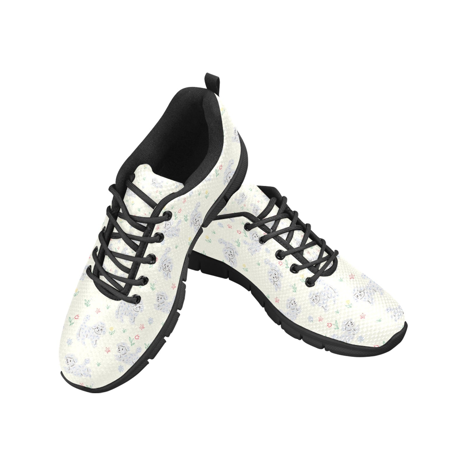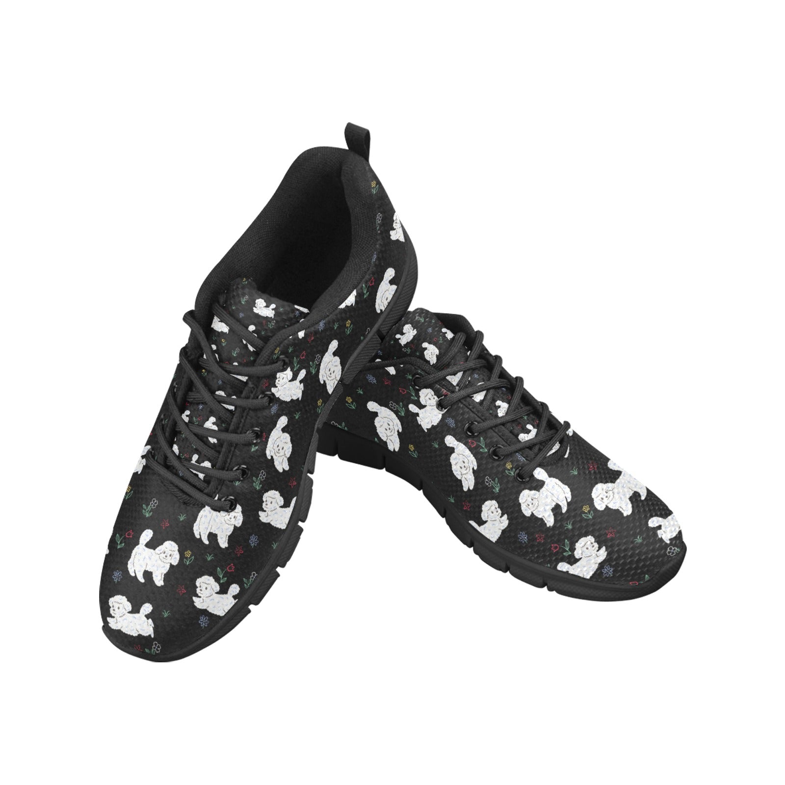 Featuring an adorable Bichon Frise pattern surrounded by whimsical flowers, these sneakers celebrate the joyful spirit of your furry friend.