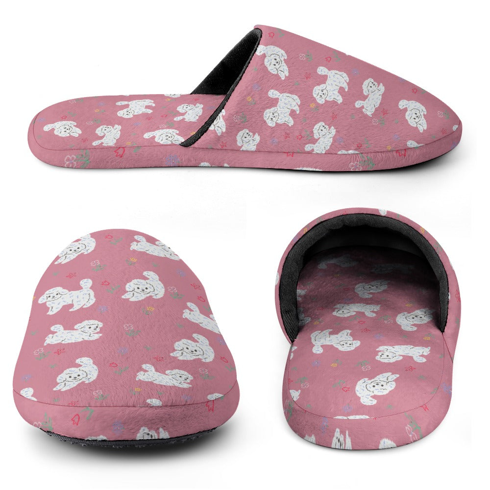 Playful Bichon Frise Love Women's Cotton Mop Slippers-18