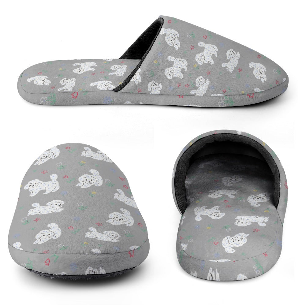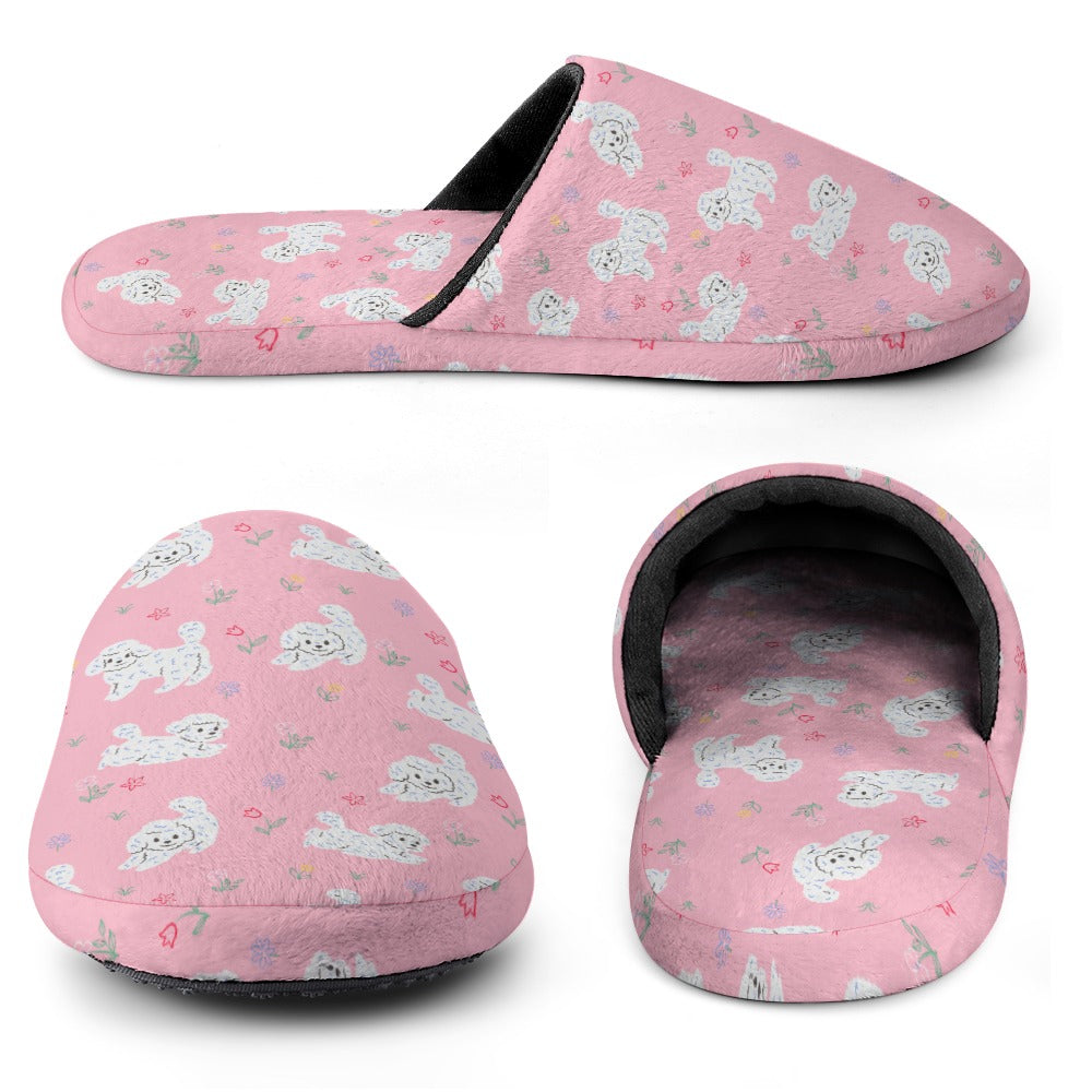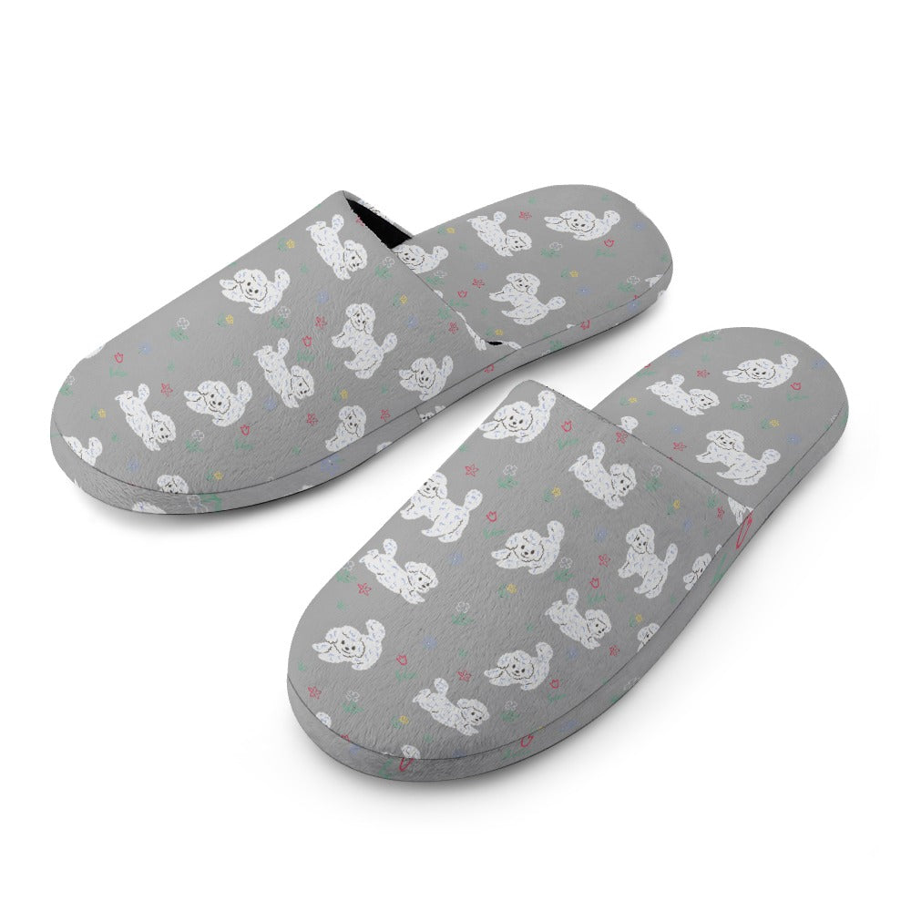 Playful Bichon Frise Love Women's Cotton Mop Slippers-37