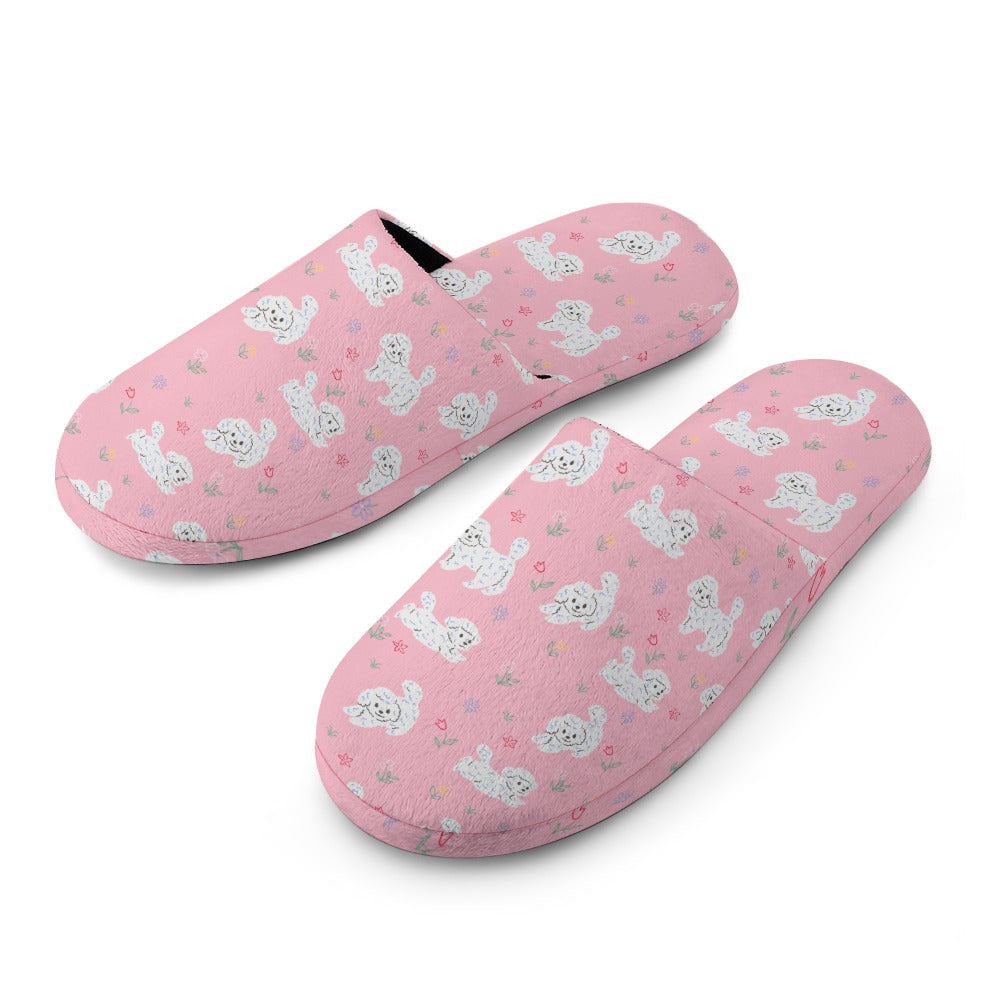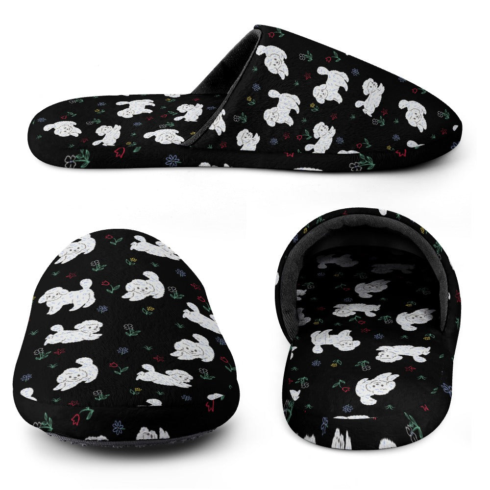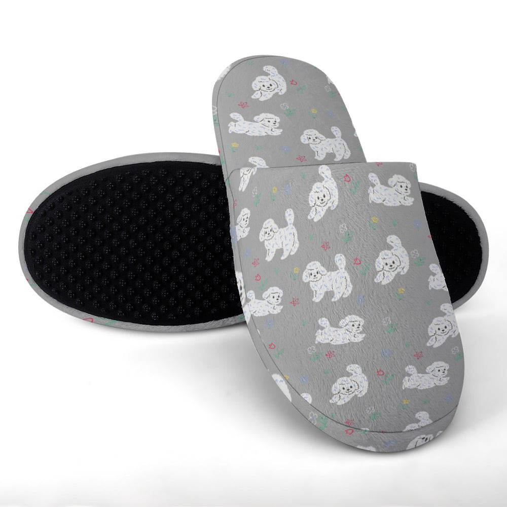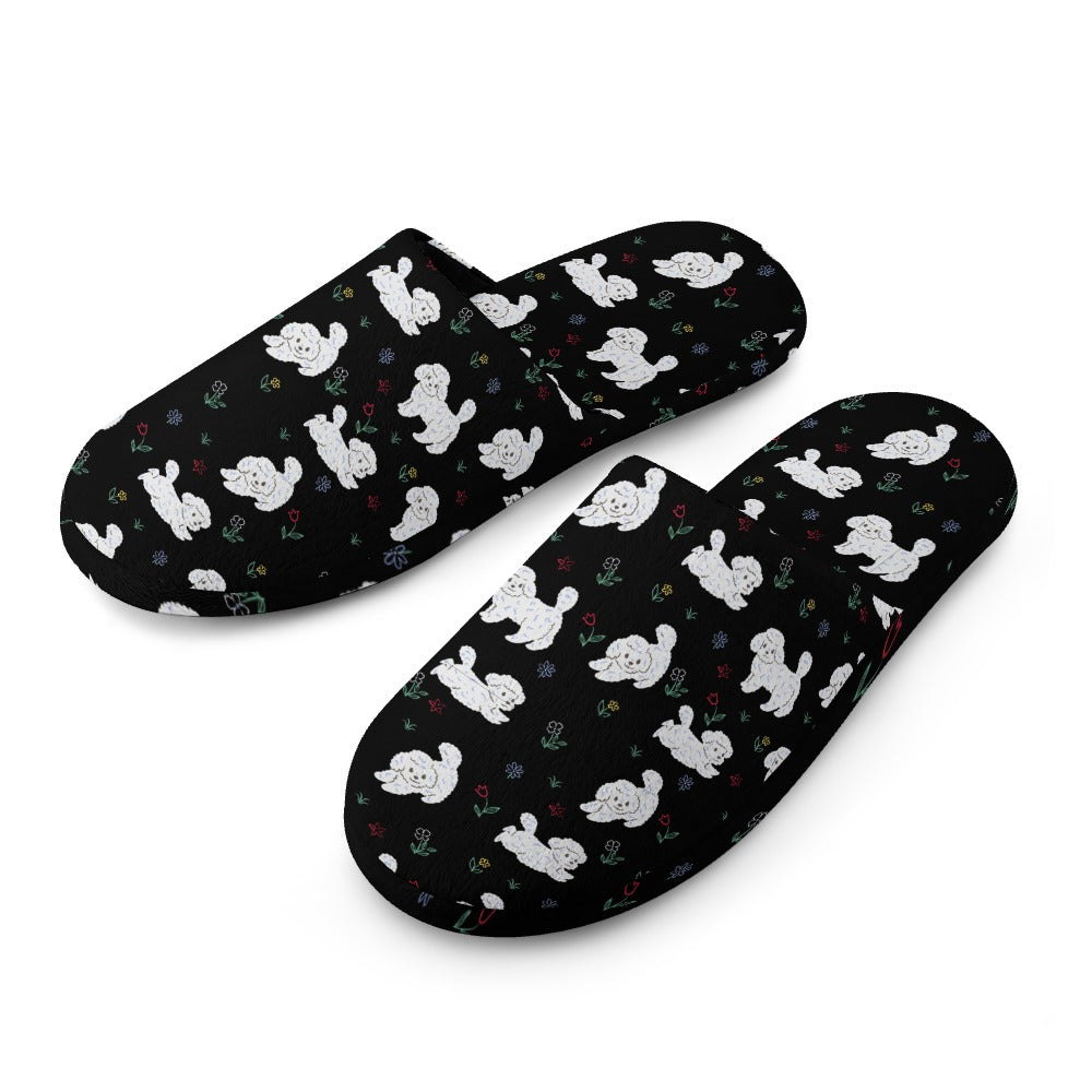 Playful Bichon Frise Love Women's Cotton Mop Slippers-37