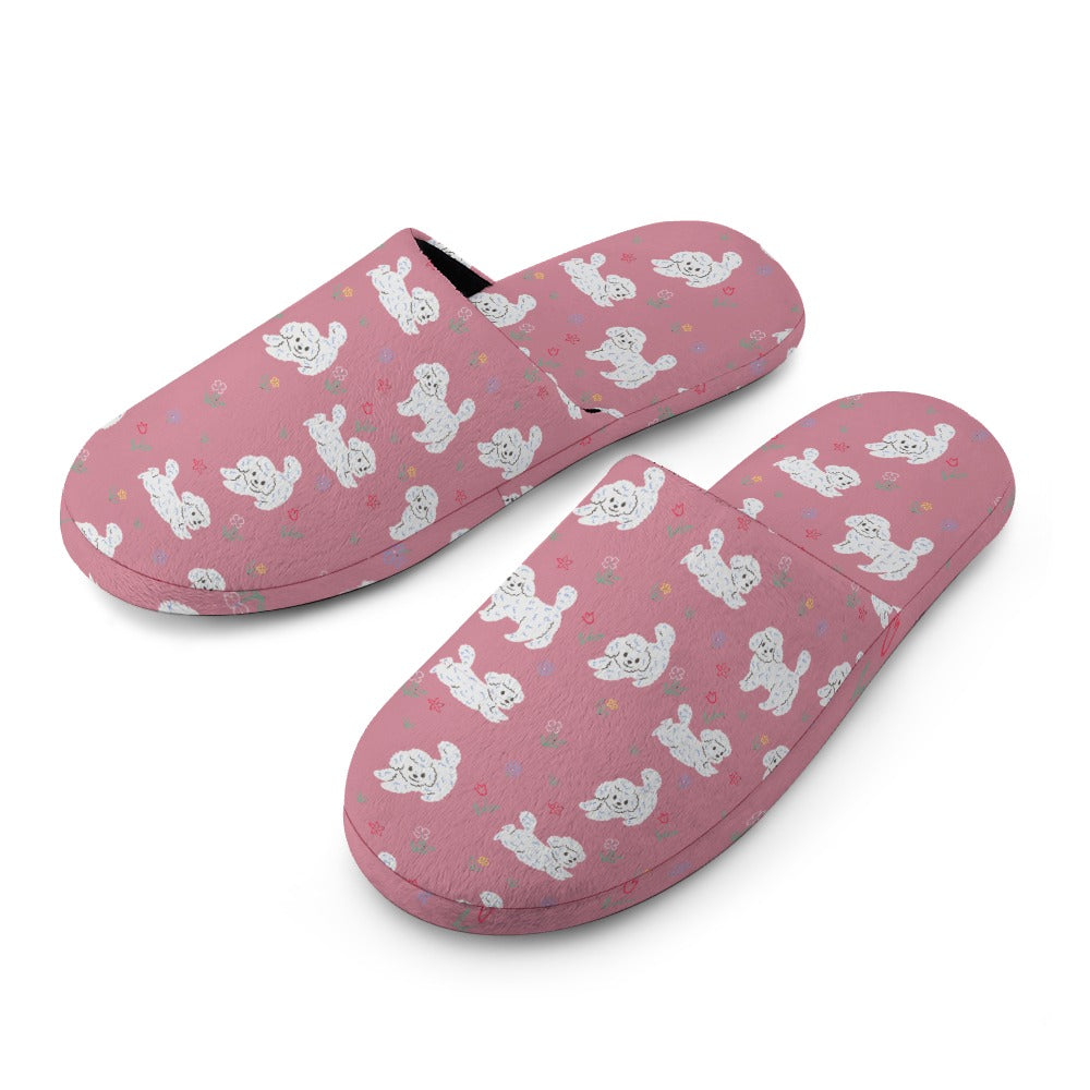 Playful Bichon Frise Love Women's Cotton Mop Slippers-23