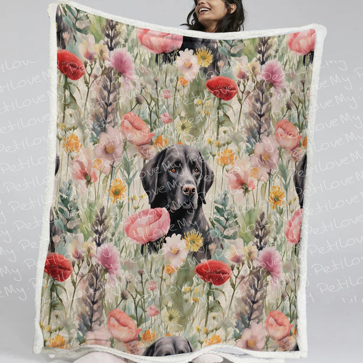 Experience the tranquility of a whimsical flower field combined with the unmistakable charm of a Black Labrador. In this breathtaking design, an adorable Black Labrador puppy takes center stage, its glossy black coat contrasting vividly against a canvas of vibrant, colorful flowers. It's more than a blanket—it's an artistic celebration of your love for Black Labradors.