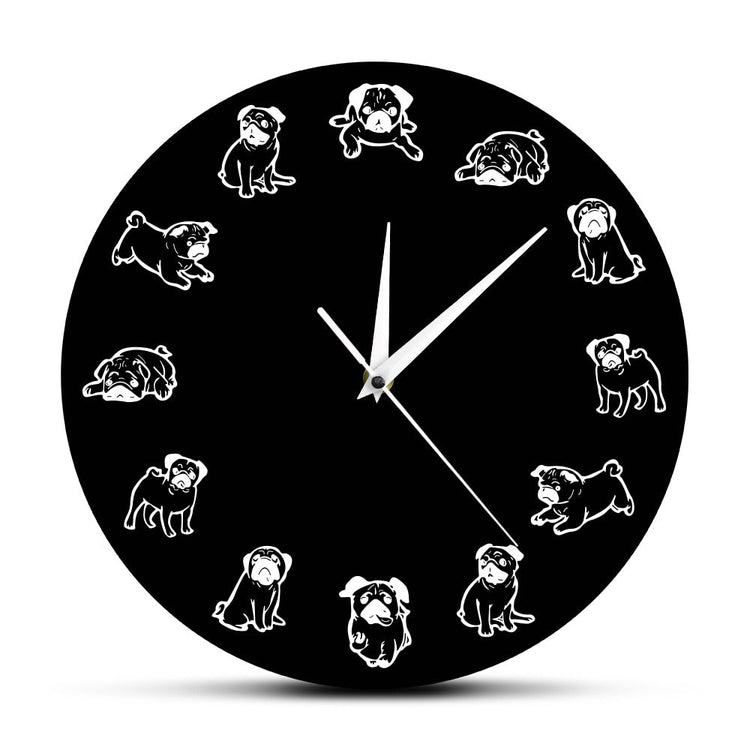 Place this cutest Black and White Pug wall clock in your bedroom, living room, kid's room, study, or anywhere you need instant Pug cheer!