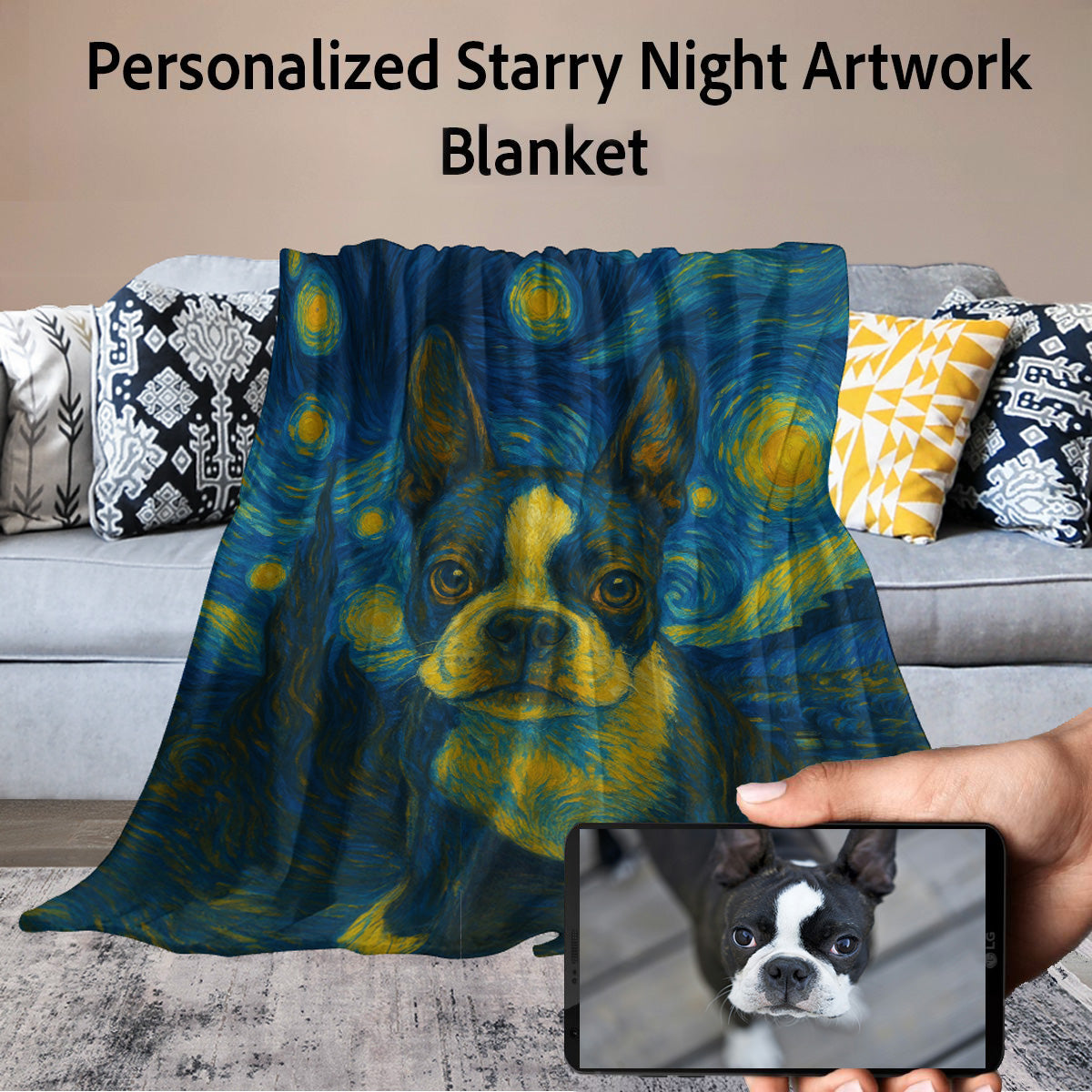Personalized Starry Night Artwork Custom Boston Terrier Blanket