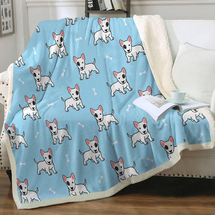 For Bull Terrier enthusiasts who understand the joy and love that comes with having a furry friend, this is more than just a blanket. Featuring an adorable design complete with the cutest Bull Terriers and bone highlights, this blanket is designed to bring a smile to your face. The high-quality Sherpa Fleece microfiber fabric ensures that your moments of relaxation are as cozy as your loyal companion.