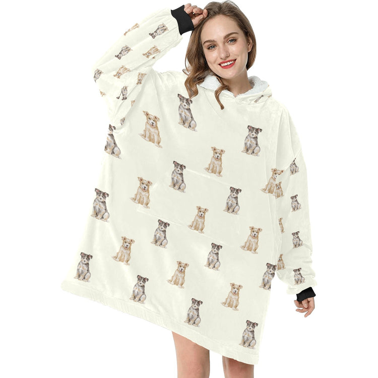 Watercolor Australian Blue Heeler Puppies Blanket Hoodie-Blanket-Apparel, Blanket Hoodie, Blankets, Blue Heeler, Dog Mom Gifts-Ivory-ONE SIZE-1