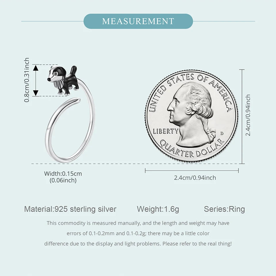 Adorable Sterling Silver Border Collie Open Ring Gift