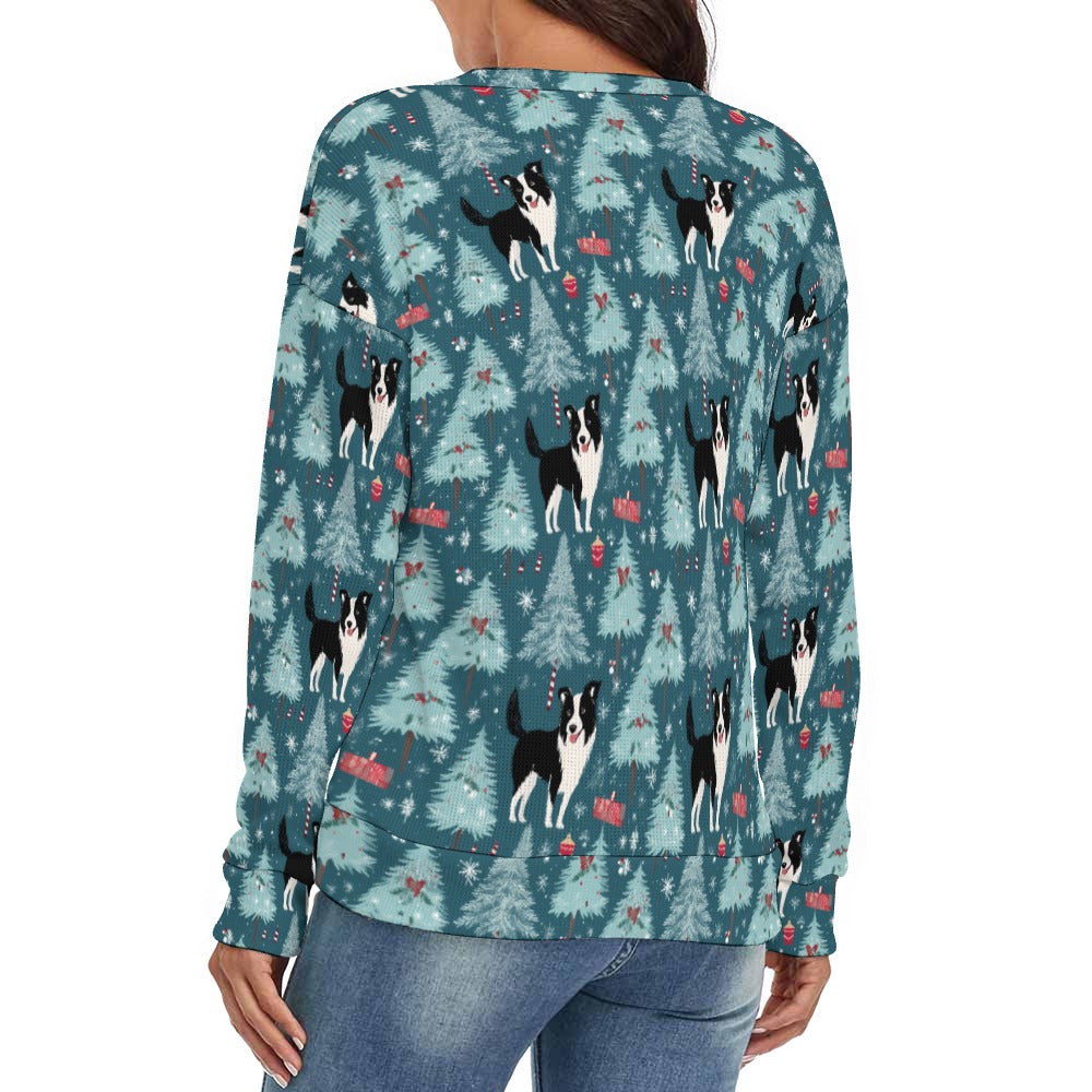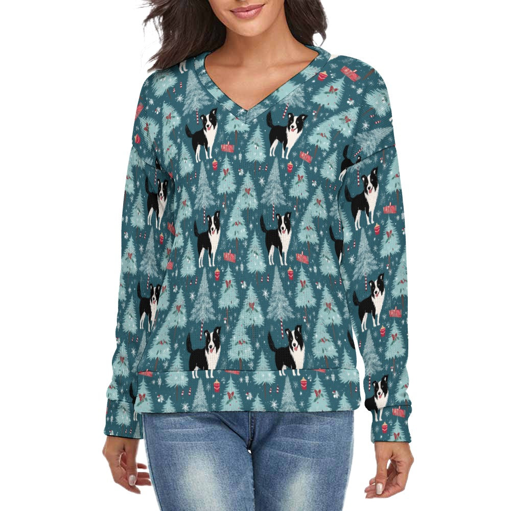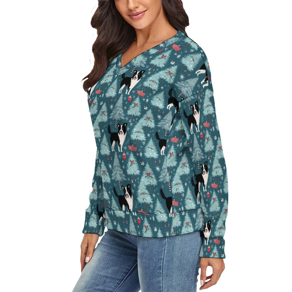 Festive Forest Border Collie Women's V-Neck Christmas Sweater-Apparel-Apparel,Border Collie,Christmas,Dog Mom Gifts,Sweater,Sweatshirt-1