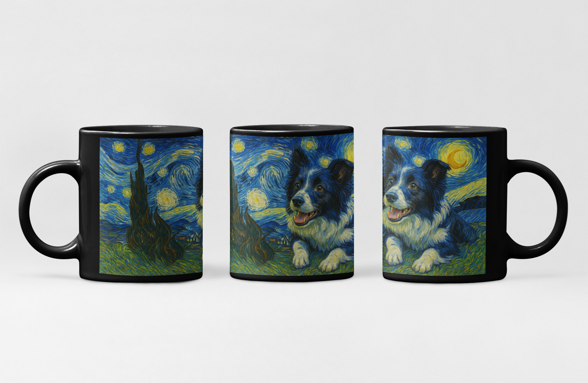 Personalized Starry Night Artwork Border Collie Coffee Mug-Mug-Border Collie,Dog Dad Gifts,Dog Memorial Gifts,Dog Mom Gifts,Mugs,Personalize Artwork-1