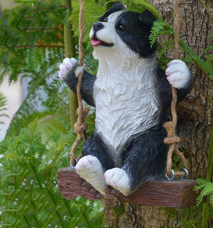 Hanging Border Collie Love Garden Statue