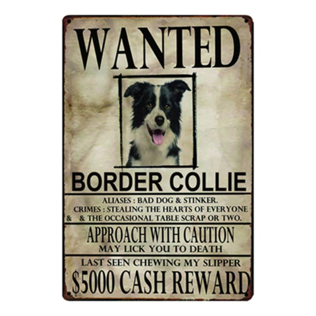 Wanted Border Collie Approach With Caution Tin Poster - Series 1-Sign Board-Border Collie, Dogs, Home Decor, Sign Board-Bullmastiff-One Size-8