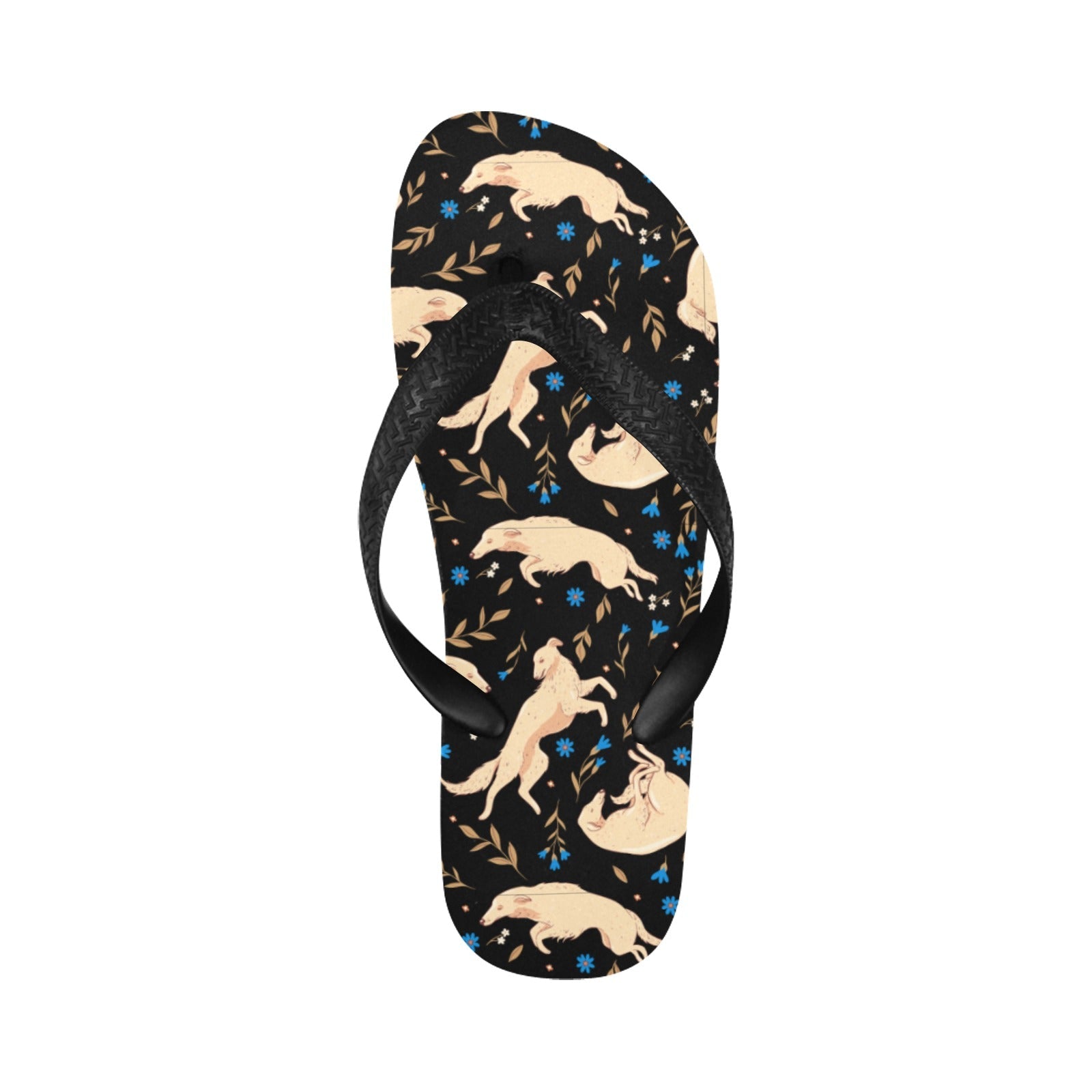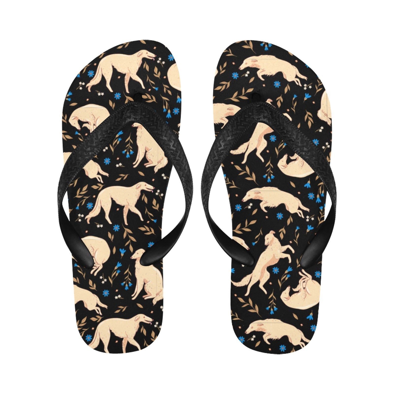 Flower Garden Borzoi Unisex Slippers-Footwear-Accessories, Borzoi, Dog Mom Gifts, Slippers-Midnight Black-S-26