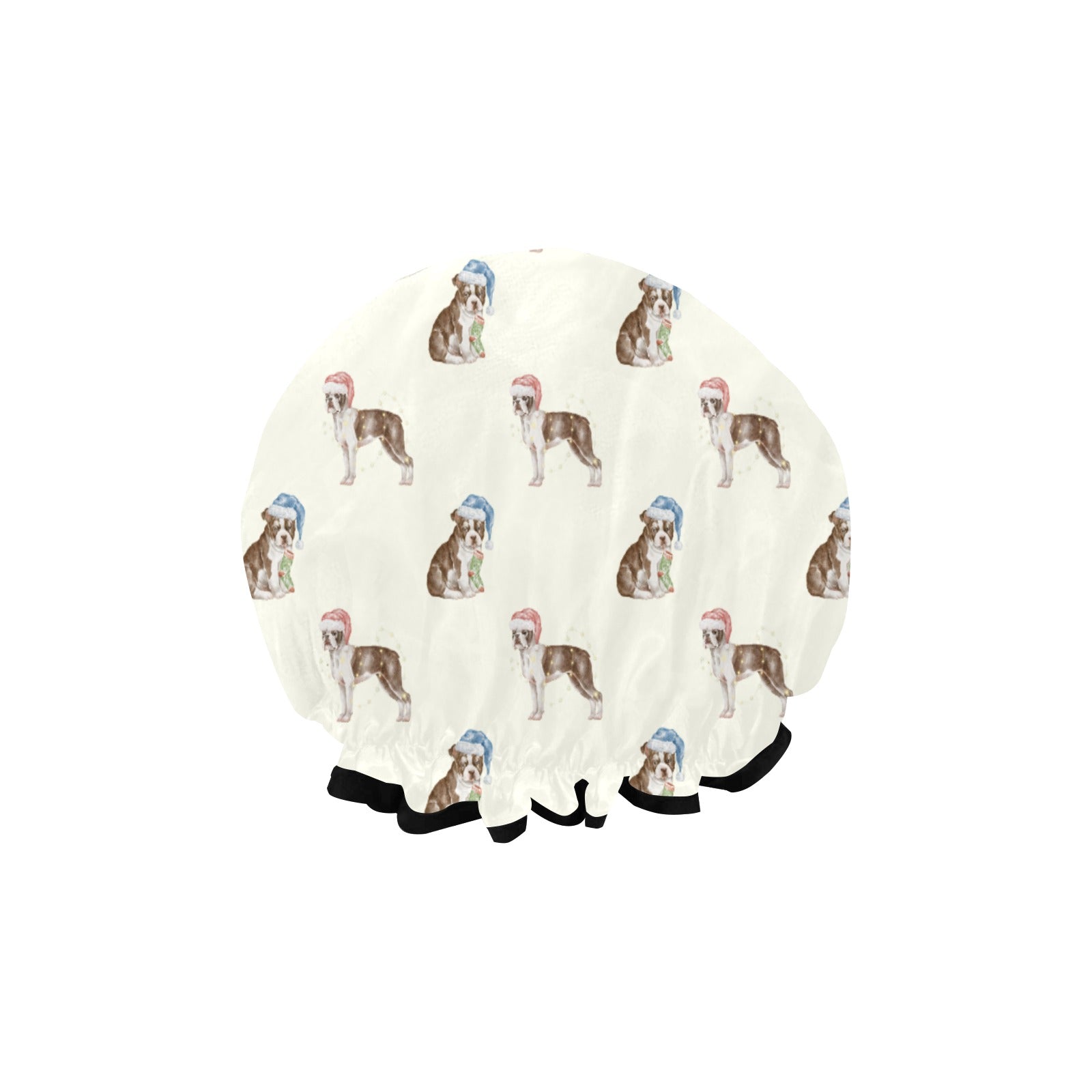 Watercolor Chocolate Red Boston Terriers Christmas Reusable Shower Caps-Accessories-Accessories, Boston Terrier, Christmas, Dog Mom Gifts-Ivory White-ONE SIZE-8