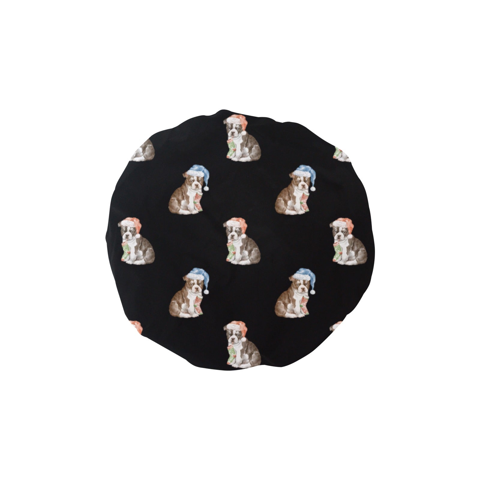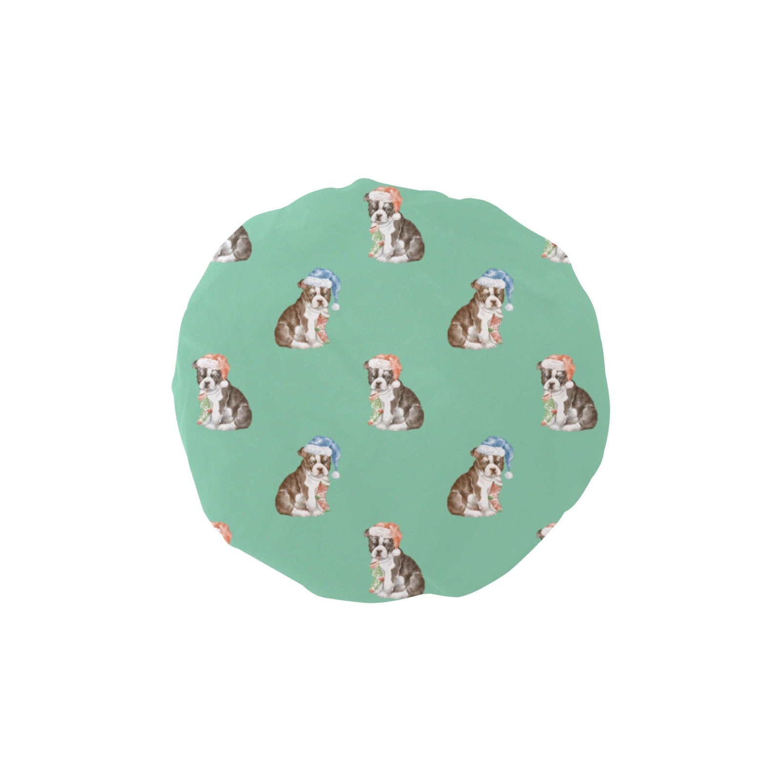 These charming shower caps feature a beautiful watercolor Christmas pattern of Boston Terriers adorned with red and blue festive hats, and accessories. Each cap is crafted with high-quality, breathable, and waterproof Oxford fabric, ensuring durability and comfort.