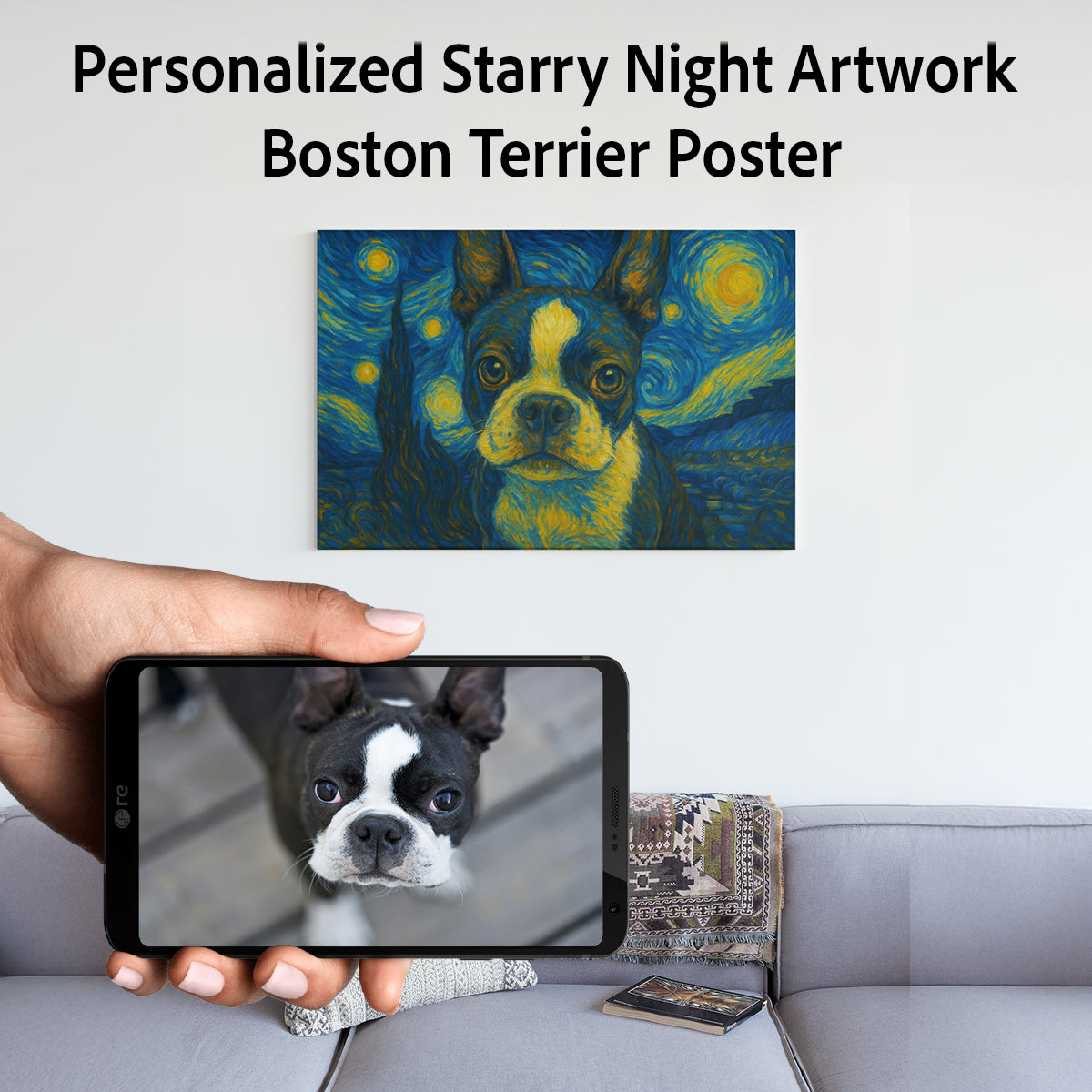Transform your love for your Boston Terrier into a stunning piece of art with our Personalized Starry Night Artwork!